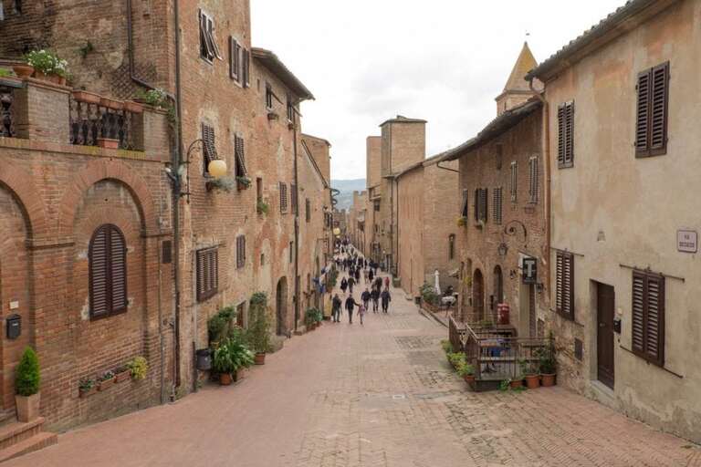 Certaldo is a town of two distinct halves. Certaldo Basso, the modern lower town, buzzes with everyday life, offering shops, services, and conveniences. Above it, Certaldo Alto, a pristine medieval hilltop village, transports you back in time with cobbled streets, red-brick buildings, and sweeping views of the Tuscan countryside. Connecting the two is a scenic funicular railway, with round-trip tickets under $2 and one-way fares around $1.50, affordable and charming.