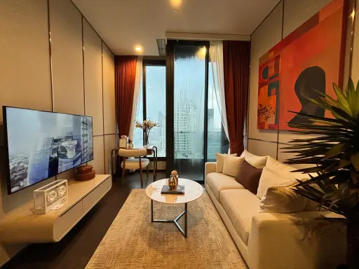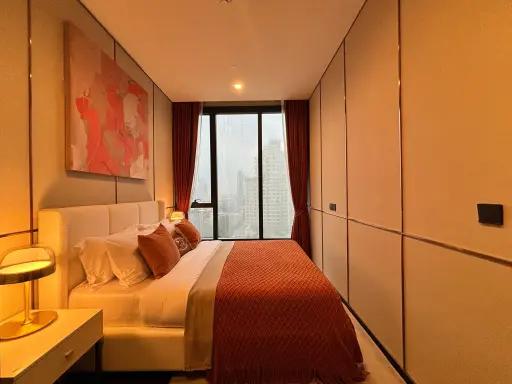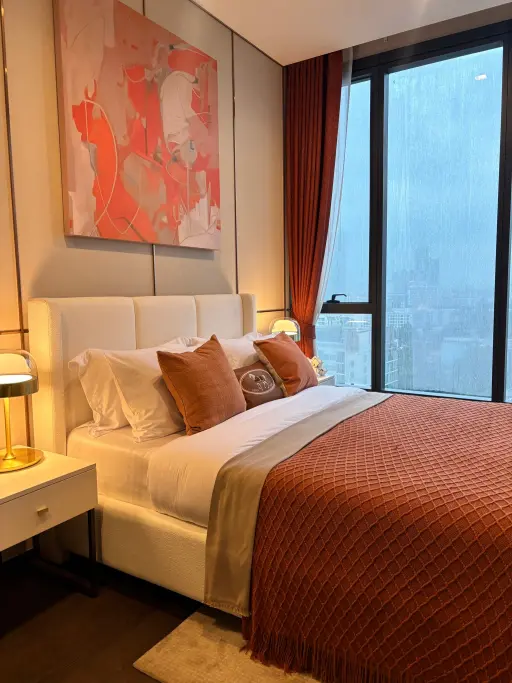 Overall, it’s a warm, neutral-toned space with subtle pops of rust and burnt orange that add character without being overwhelming. Plus, private elevator access means convenient, quiet entry. If you want something ready to go in Watthana with a genuine city feel, this is worth a look.