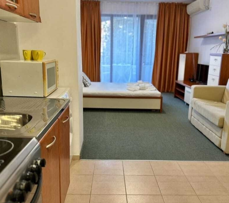 Marina Cape is located in a quiet and peaceful area, away from the tourist noise. It is 1000 meters to the center of Acheloy, where there are restaurants, cafes, a kindergarten, a school, and everything you need to relax. The private beach and yacht harbor are just 100 meters away. The beach strip of Aheloy is approximately 10 km long and 20 meters wide. Water sports such as surfing, windsurfing, and motor jets are available for enthusiasts. Not far from the complex, there is an ecologically clean river that is a popular spot for anglers. Pomorie is one of the best places for balneological tourism thanks to its healing mud, located 9 km away.