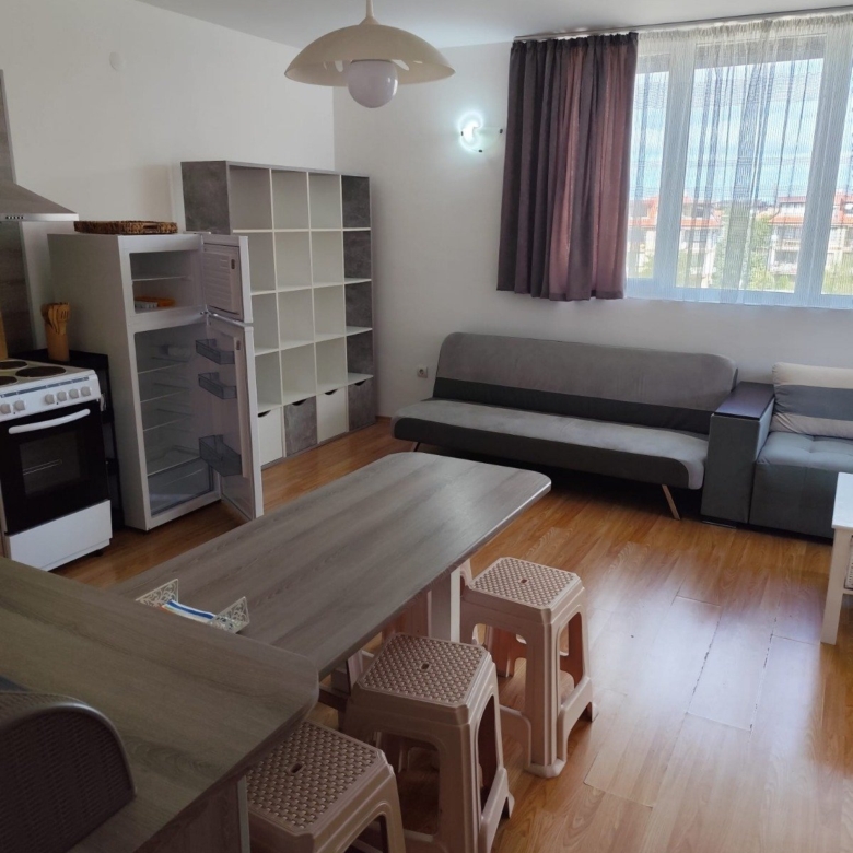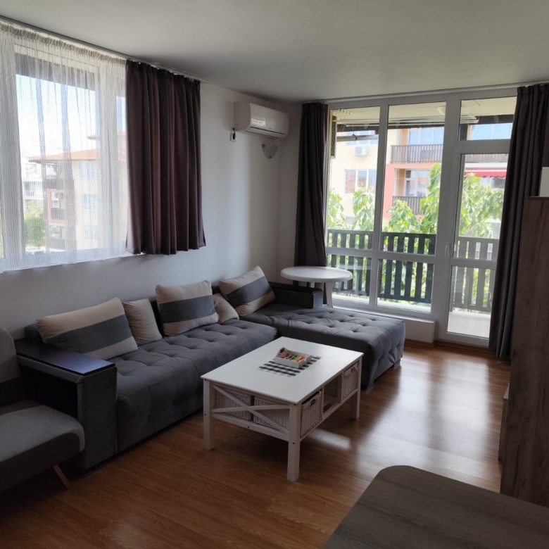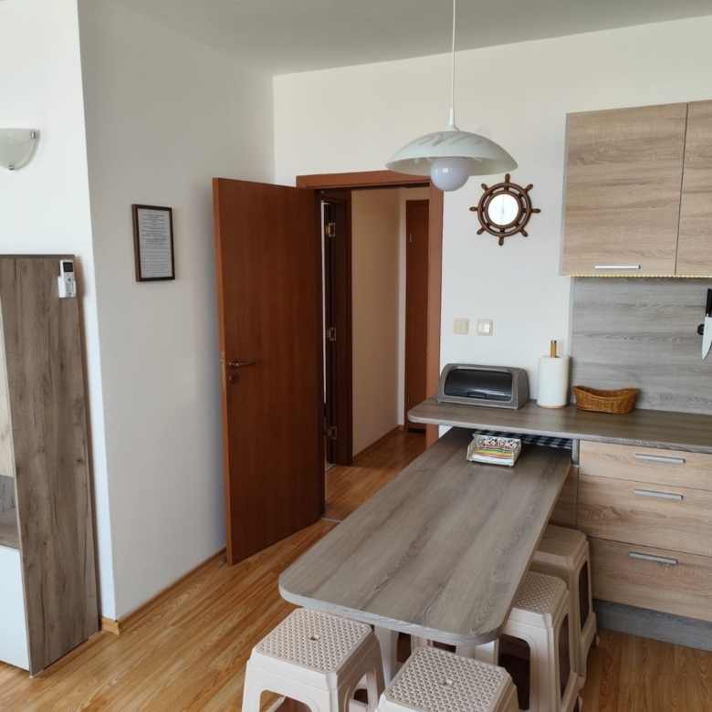 We are pleased to present you with a comfortable apartment in the popular Chateau Aheloy 2 complex in Aheloy, Bulgaria. The apartment is located on the 4th floor of a 6-storey building with an elevator and impresses with its practical layout as well as a side sea view from the balcony.