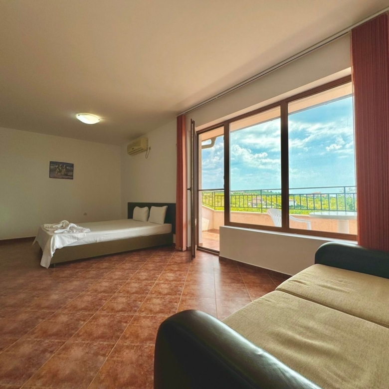 We offer various apartments in the Arkite Complex in Kosharitsa, Bulgaria. Prices start from EUR35,100 for studios, EUR53,000 for 2-bedroom apartments, and EUR94,000 for 3-bedroom apartments. Views of the sea, pool, or the complex.
