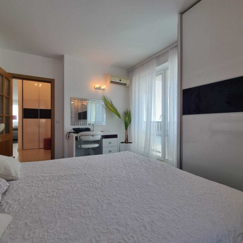 For sale is a spacious and high-quality furnished 1-room apartment with stunning sea views, located in the quiet and well-maintained “Chateau Panorama” complex near the popular Sunny Beach resort, Bulgaria.
