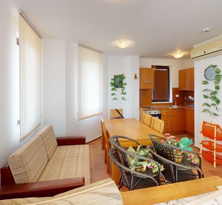 The complex is located at the foot of the Stara Planina Mountains, in a quiet and green area with panoramic views of the Black Sea. Just 3 km from Sunny Beach and Nessebar – the perfect combination of nature and seaside vacation.