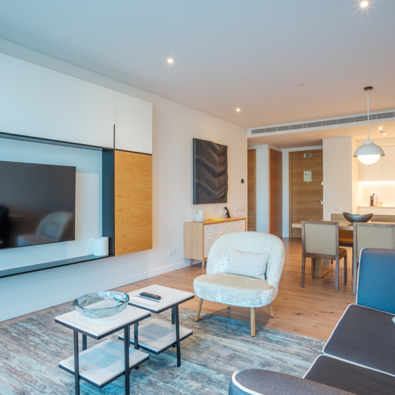 1-bedroom apartment with 72 sqm of private gross area and 13.70 s m of dependent gross area, fully furnished, with a spacious balcony, situated in the prestigious HYATT REGENCY in Junqueira, Lisbon.Apartment with guaranteed profitability, set within a 5-star hotel, offering stunning river views and luxurious flats with contemporary design in a prime location. Amenities include a rooftop restaurant and bar with magnificent views, a Serenity Spa – The Art of Well Being, fitness centre, meeting rooms and parking. The owner of this flat has enjoyed guaranteed profitability from a world-renowned hotel chain. The Hyatt Regency Lisbon, branded and managed by Hyatt Regency, one of the largest international hotel brands, comprises 108 luxurious riverside apartments, close to Lisbon city centre.Located within a 5-minute walking distance from the Tagus River and the entire riverside area. 10 minutes from CUF Tejo Hospital, 15 minutes from MAAT- Museum of Art, Architecture and Technology and the Institute of Hygiene and Tropical Medicine (IHMT). A 5-minute drive from access to the 25 de Abril Bridge, 10 minutes from Lycée Français Charles Lepierre, Salesianos de Lisboa School, Necessidades Palace and 15 minutes from Lisbon city centre. 20 minutes from Humberto Delgado Lisbon Airport.