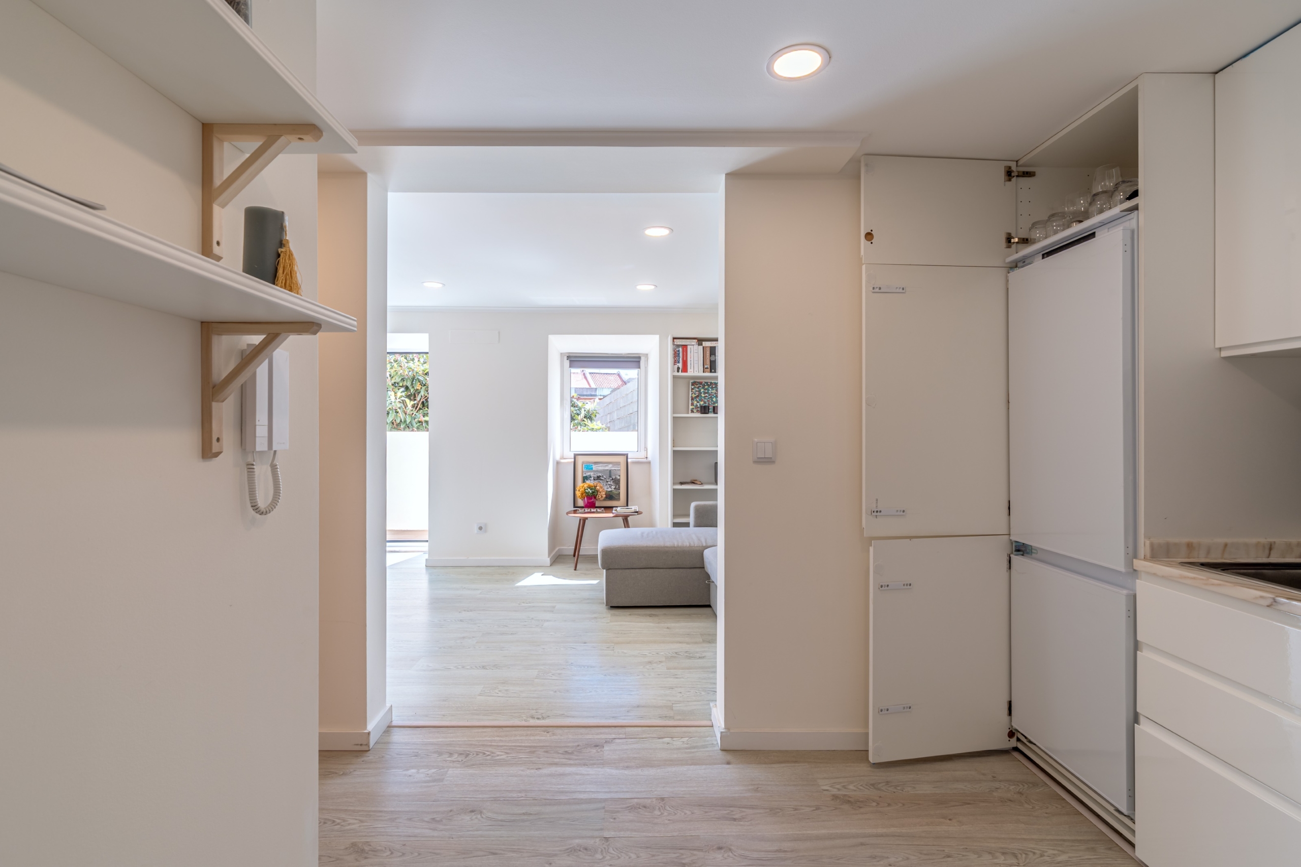 1+1-Bedroom apartment, with 93m2 gross floor area, with balcony, in Junqueira, Lisbon.The renovated apartment comprises a living room and suite with access to a balcony, an interior dining room, a fitted kitchen and 2 bathroom with shower. The building was constructed in 2019, is in good condition and located in an area with easy parking. South-facing and situated at the rear of the building, it benefits from great tranquility and unobstructed views.Located within a 5-minute walking distance from the riverside area, the Alcântara Maritime Promenade and Monsanto Park, Avé Maria School, A Promotora School, LX Factory, Cordoaria Nacional, MAAT and MACAM – Armando Martins Museum of Contemporary Art. A 10-minute walking distance from Ajuda Market and Pingo Doce. A 15-minute walking distance from the historic area of Belém, Coach Museum, Jerónimos Monastery and Discoveries Monument. Worth noting are the excellent road and rail connections, within a 5-minute driving distance from the A5 motorway and train station. 30 minutes from Lisbon Airport.