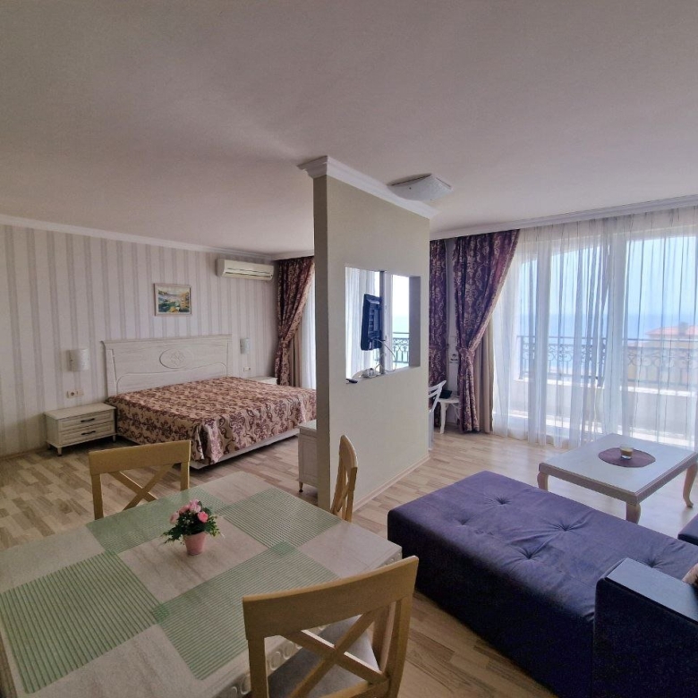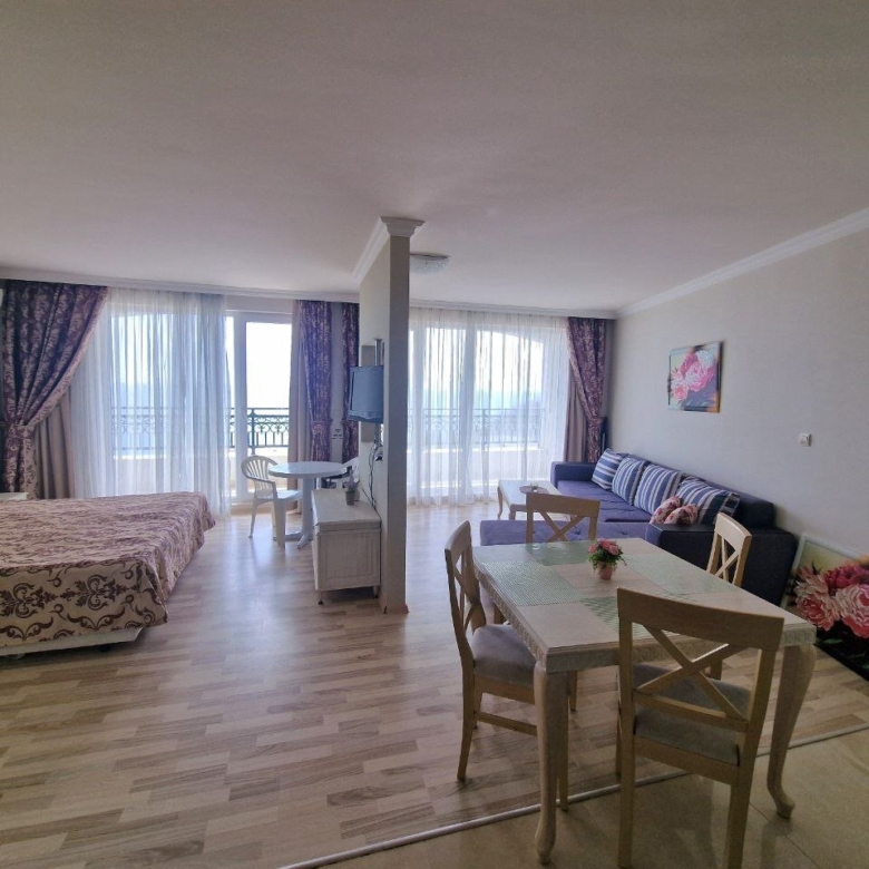 Unique spacious studio apartment in a complex on the first coastline in Pomorie.