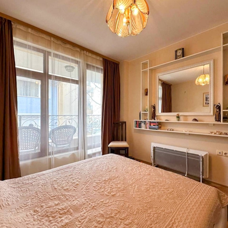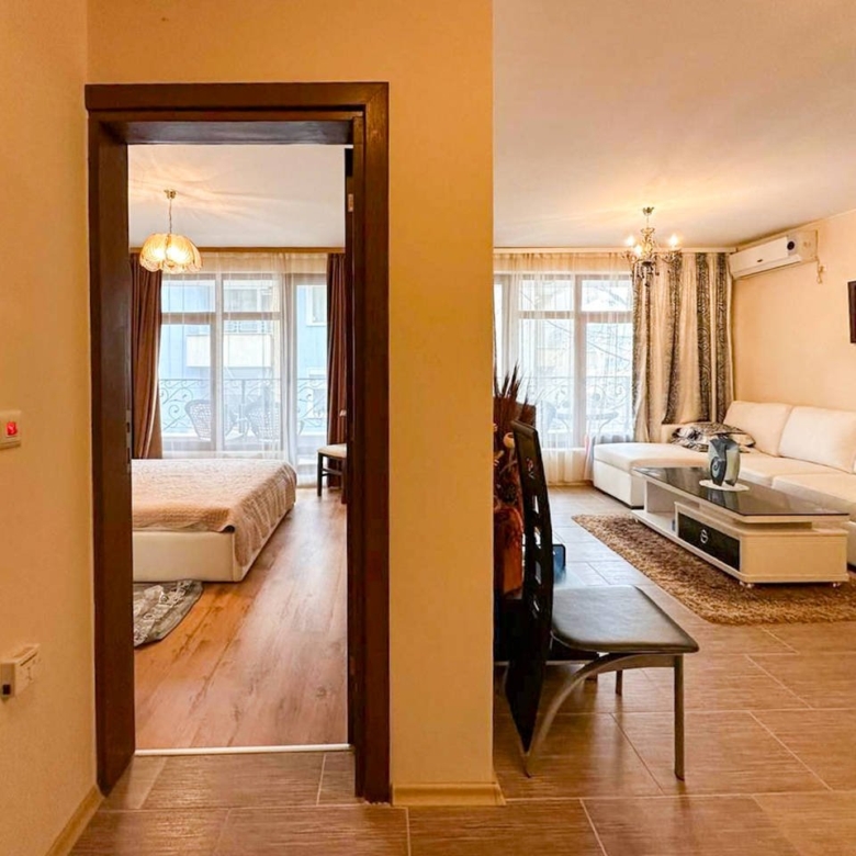 We offer for sale a cozy one-bedroom apartment located on the second floor of the Rich 3 residential complex. The apartment includes an entrance hall, a spacious living room with a kitchen and dining area, a separate bedroom, a bathroom, and a terrace. It features a bright interior and quality renovation. The apartment is fully furnished and equipped with modern household appliances.