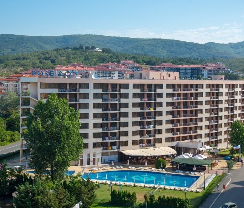 Poseidon is located in a well-developed area with many shops, restaurants, and leisure facilities nearby. Transport connections are convenient, with regular buses to Nessebar, Sunny Beach, and Burgas. Burgas International Airport is about a 20-25 minute drive away, making the complex attractive for international visitors as well.