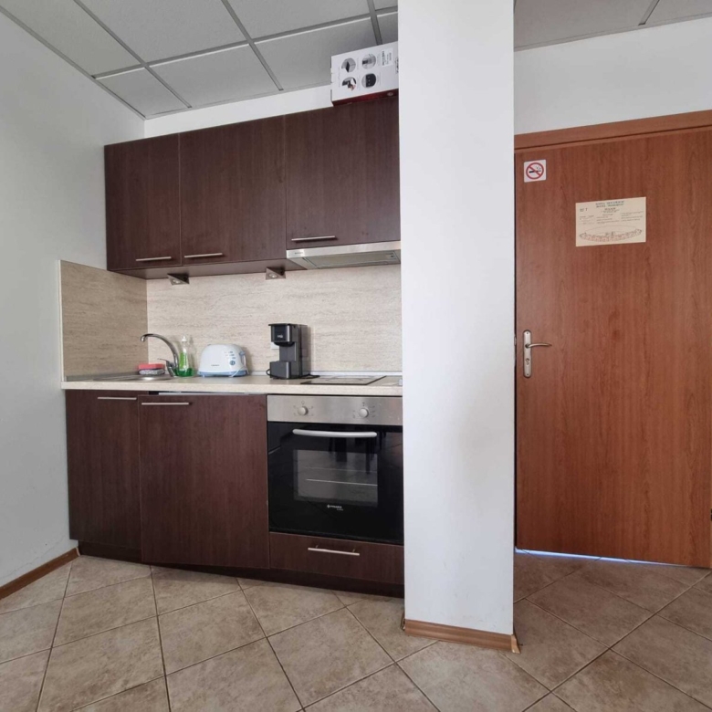 The aparthotel is only 200 meters from Sunny Beach and a 2-minute walk from the busy promenade of the resort with various bars, restaurants, shopping passages, and attractions. The aparthotel is 2 km from the center of Sunny Beach. The nearest bus stop is 100 meters away and will take you to the center of Nessebar and the historical part, located 6 km away, which is a UNESCO World Heritage site.