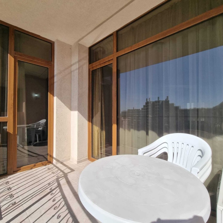 We offer you a 2-room apartment with a total area of 71.6 m² on the 8th floor of the Poseidon complex at Sunny Beach, Bulgaria. The complex is located just 200 meters from the beach and promenade.