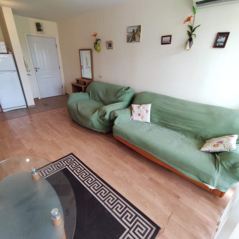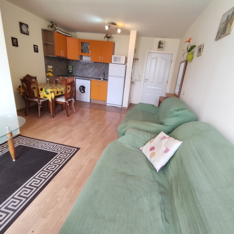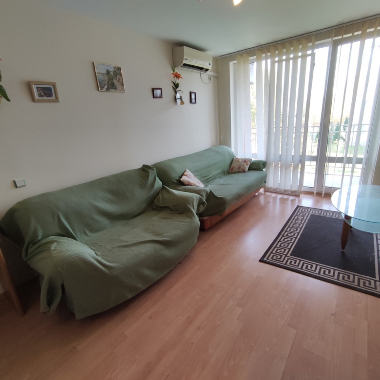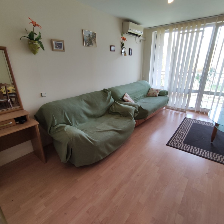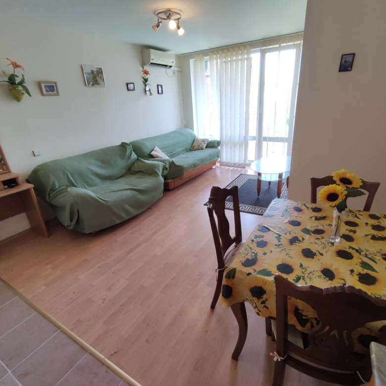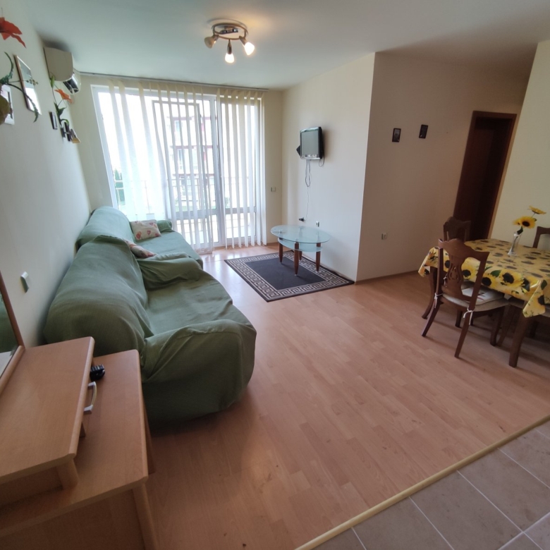 We offer you an attractive 2-room apartment in the renowned Nessebar Fort Club residential complex in Sunny Beach, Bulgaria. The apartment is located on the 1st floor of a building without an elevator and has a living area of 60 m².