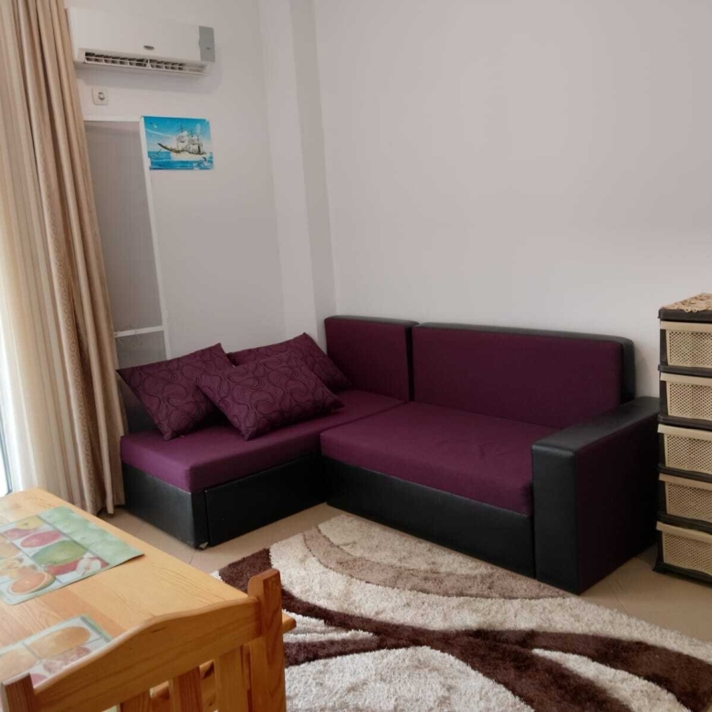 The layout includes a bright living room with an integrated kitchenette, a separate bedroom, a modern bathroom with a shower, and a cozy terrace that invites relaxation. The property is offered fully furnished and is ready for immediate occupancy – ideal for personal use or as a vacation property with rental potential.
