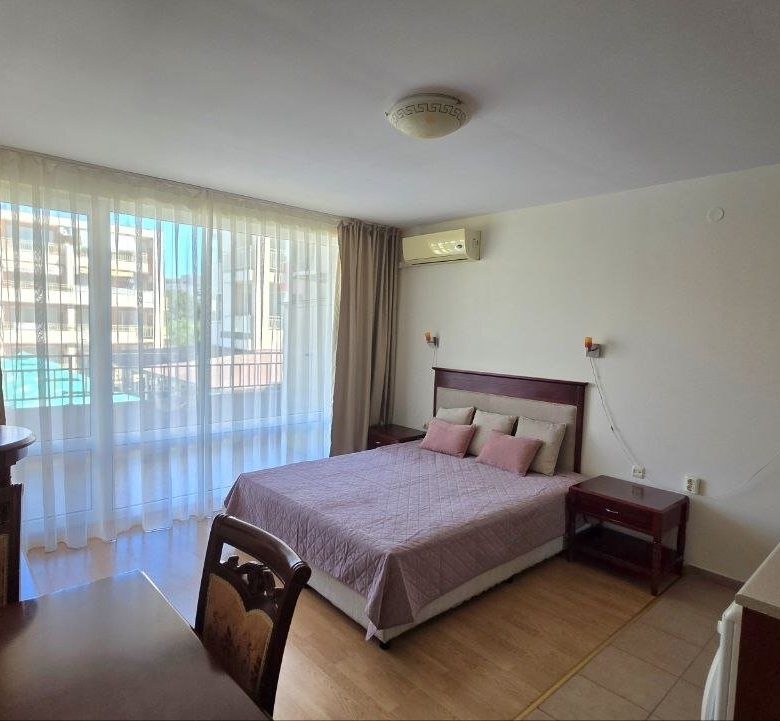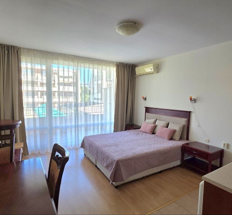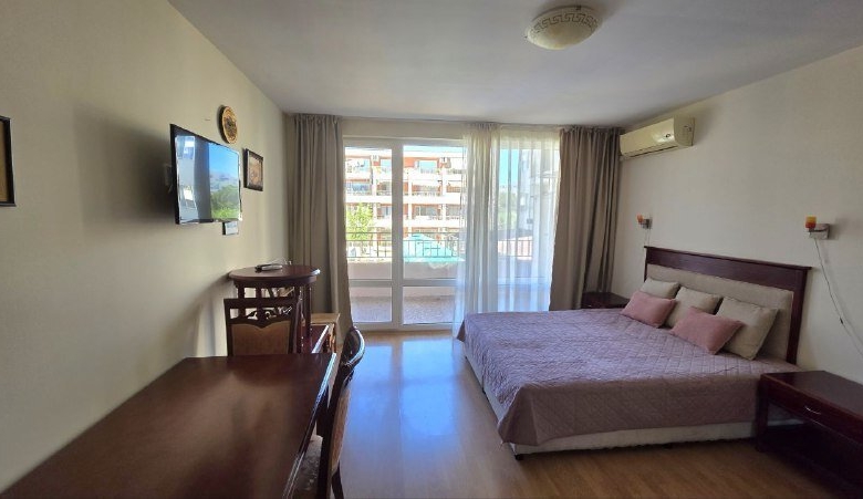 The “Nessebar Fort Noks” complex offers excellent infrastructure with swimming pools, restaurants, bars, shops, sports courts, playgrounds, mini-golf, parking, and 24-hour security service.