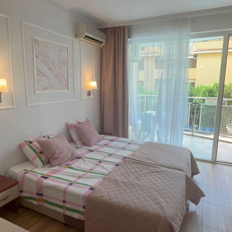 Sunny Beach center: a few minutes’ walk to the lively promenade with restaurants, cafés, bars, and shops
