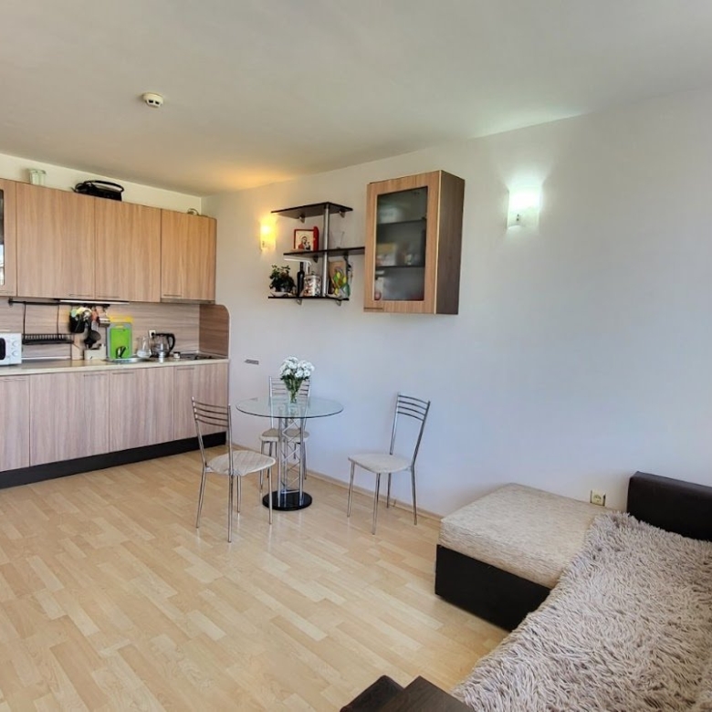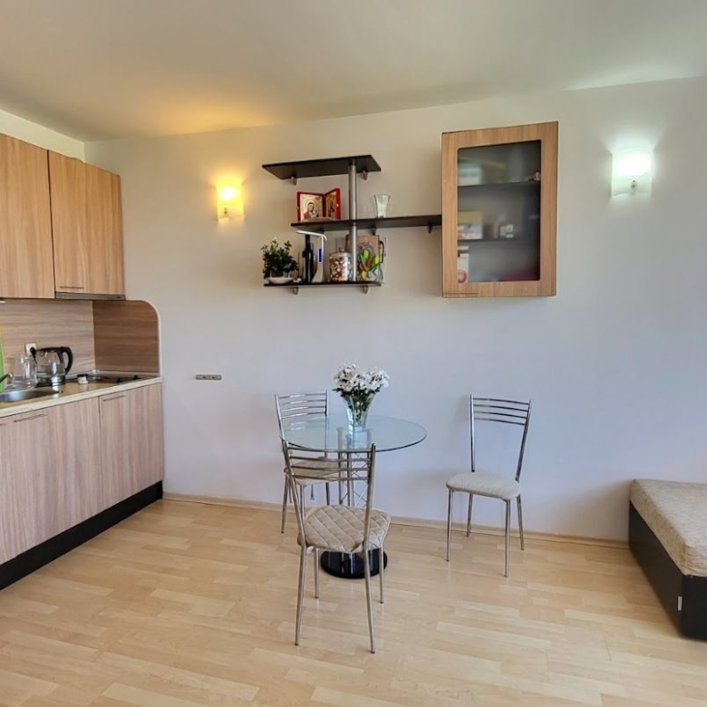 This cozy 2-room apartment is located in the well-maintained residential complex Stella Polaris, in the southern, quiet part of Sunny Beach. The complex is situated in a green and peaceful environment, just 500 meters from the fine sandy beach – ideal for relaxation and retreat from the hustle and bustle.