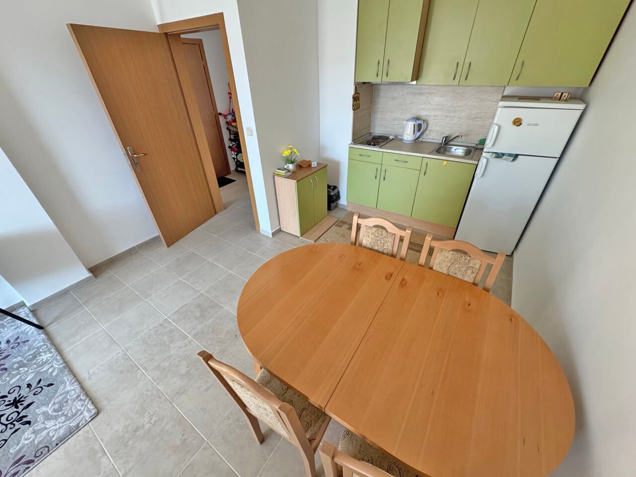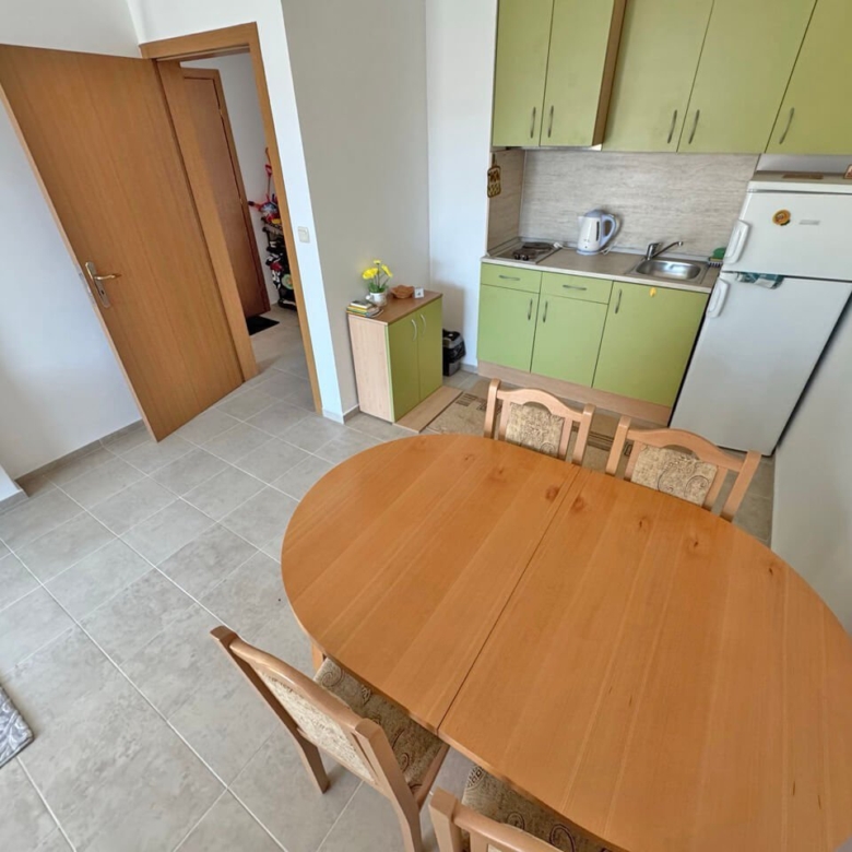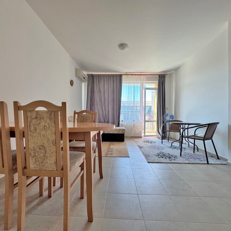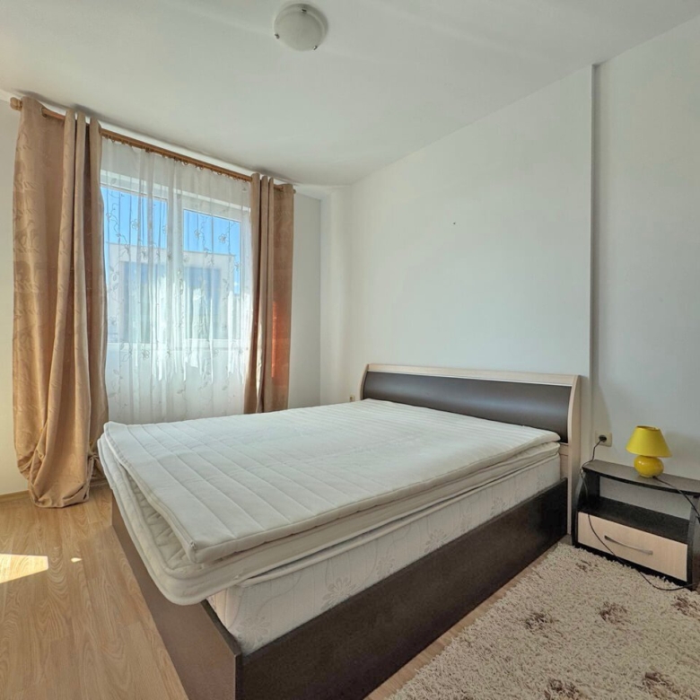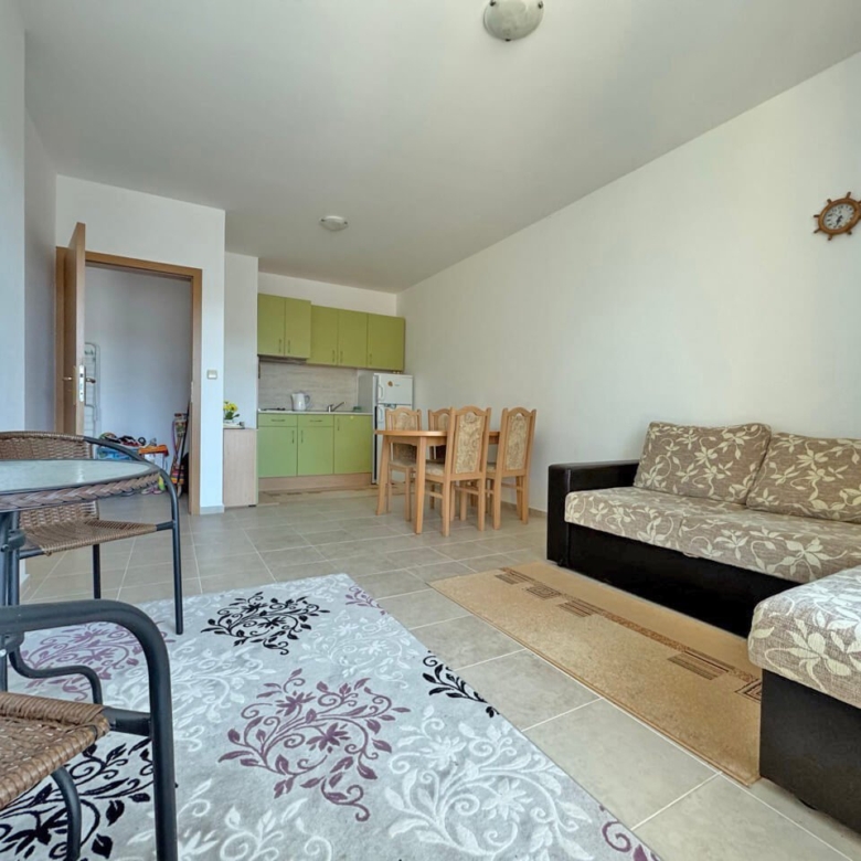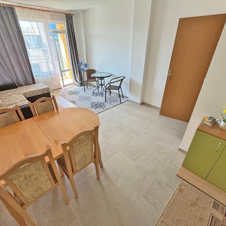 This stylish and fully equipped two-room apartment is located in the renowned residential complex Hermes in the quiet northern part of the popular resort of Sunny Beach on the Bulgarian Black Sea coast. The complex is distinguished by its high-quality construction, well-maintained communal areas, and prime location—only about 500 meters from the fine sandy beach.