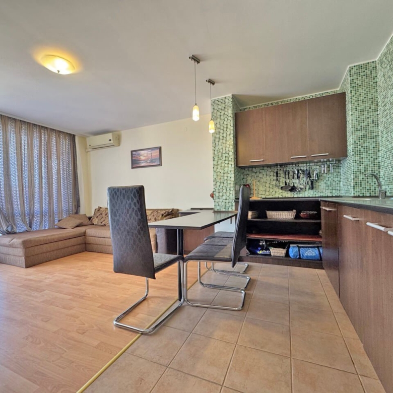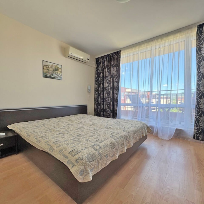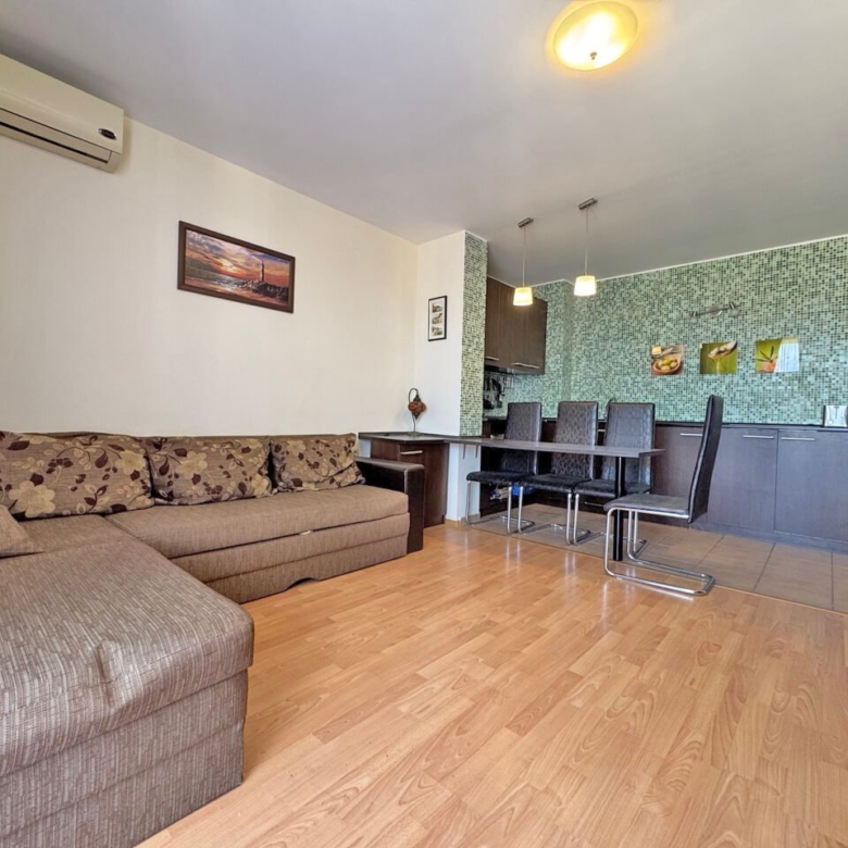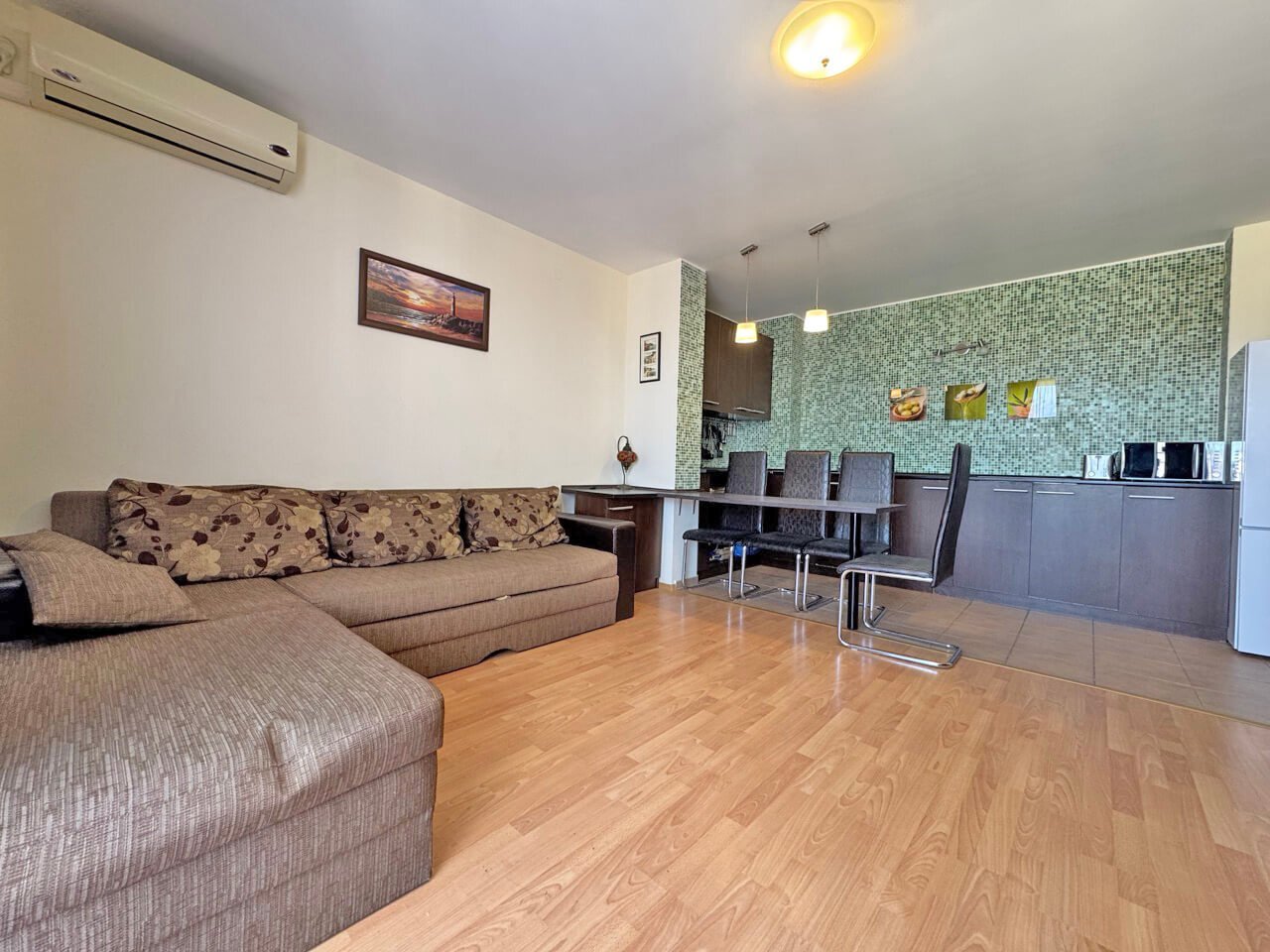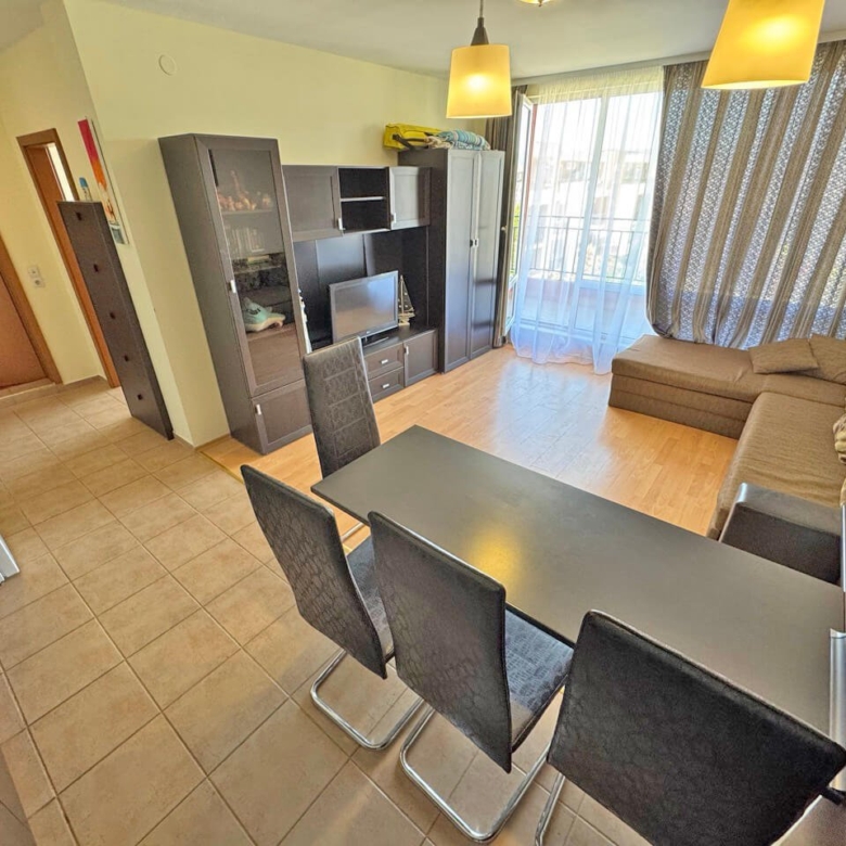 For sale is a cozy and well-equipped two-room apartment in the popular Holiday Fort complex in Sunny Beach, Bulgaria.