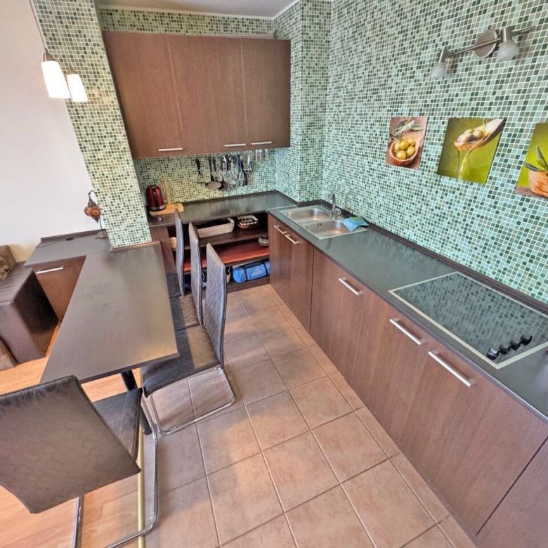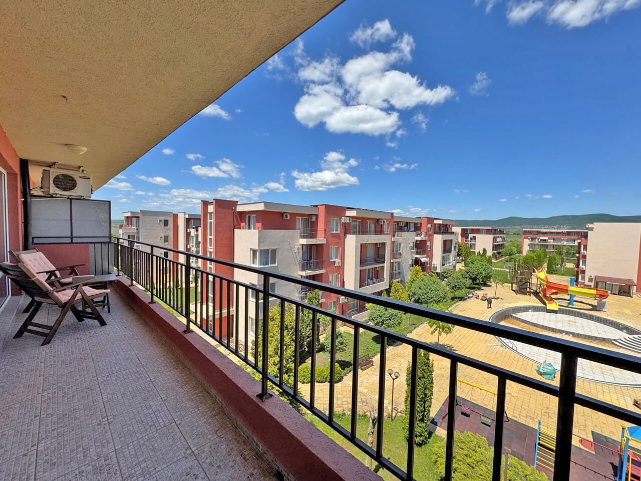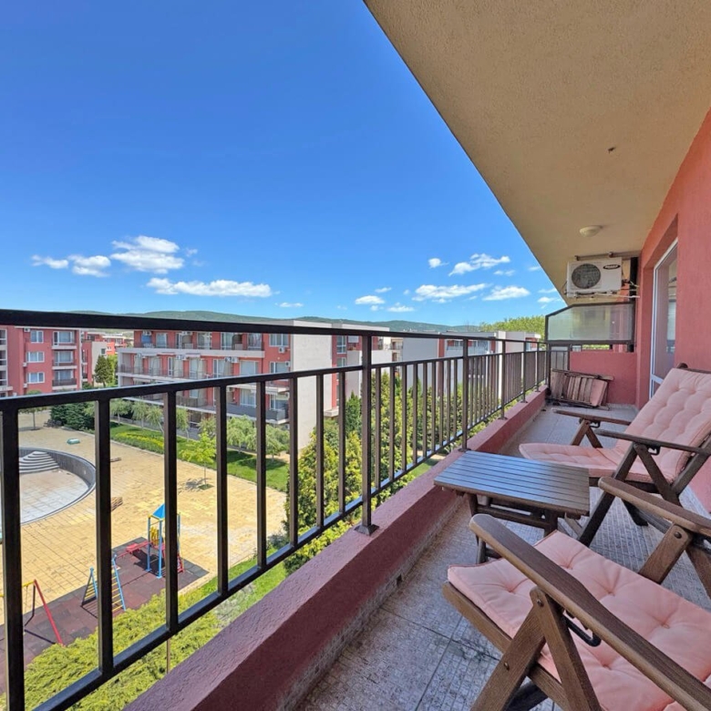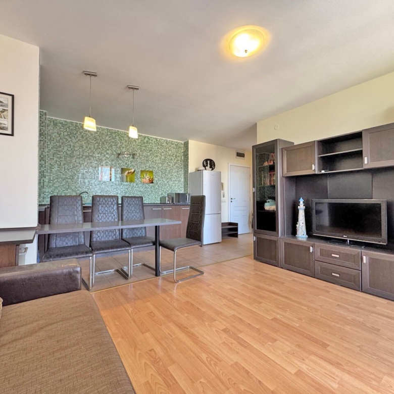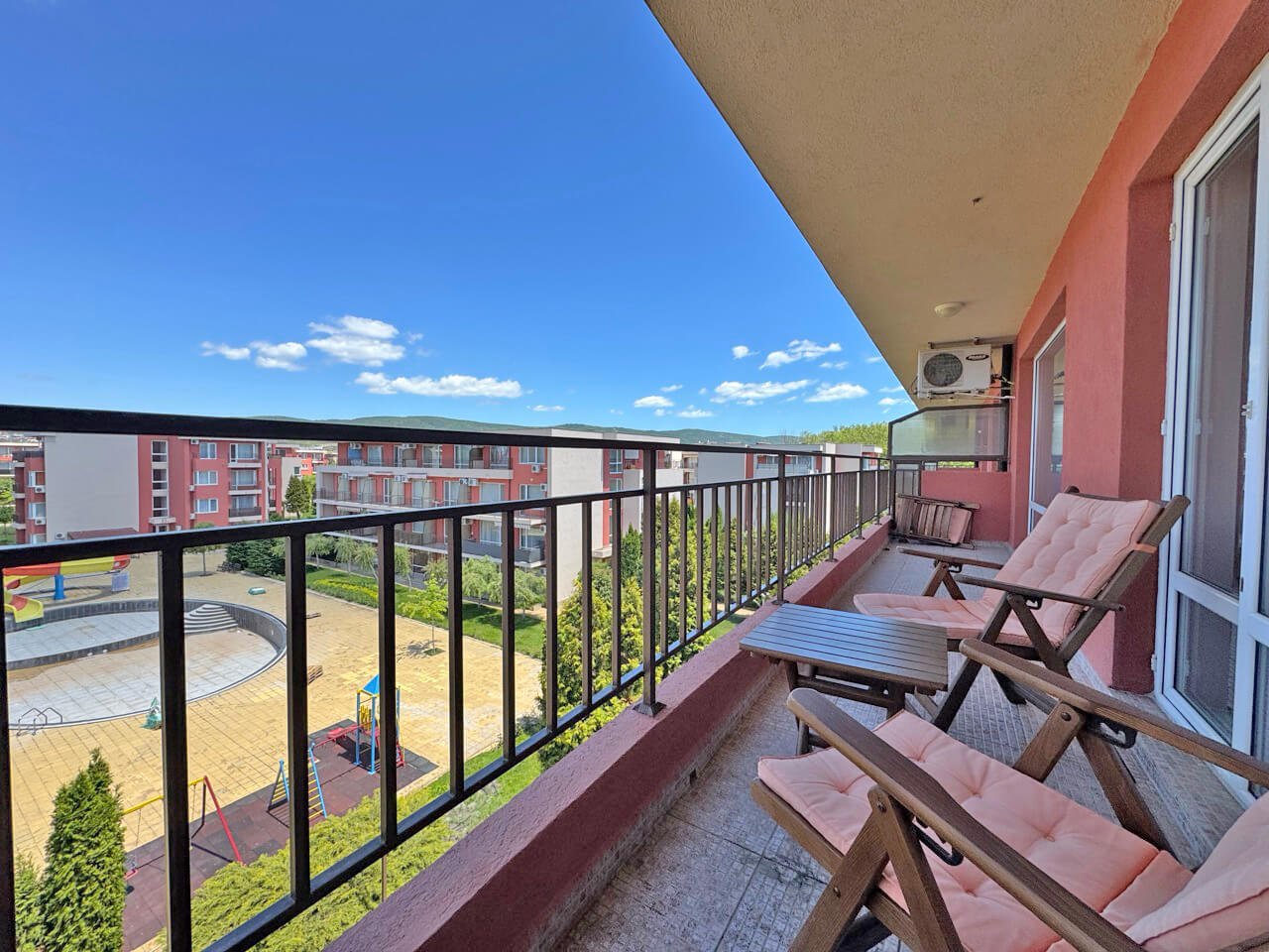 For sale is a cozy and well-equipped two-room apartment in the popular Holiday Fort complex in Sunny Beach, Bulgaria.