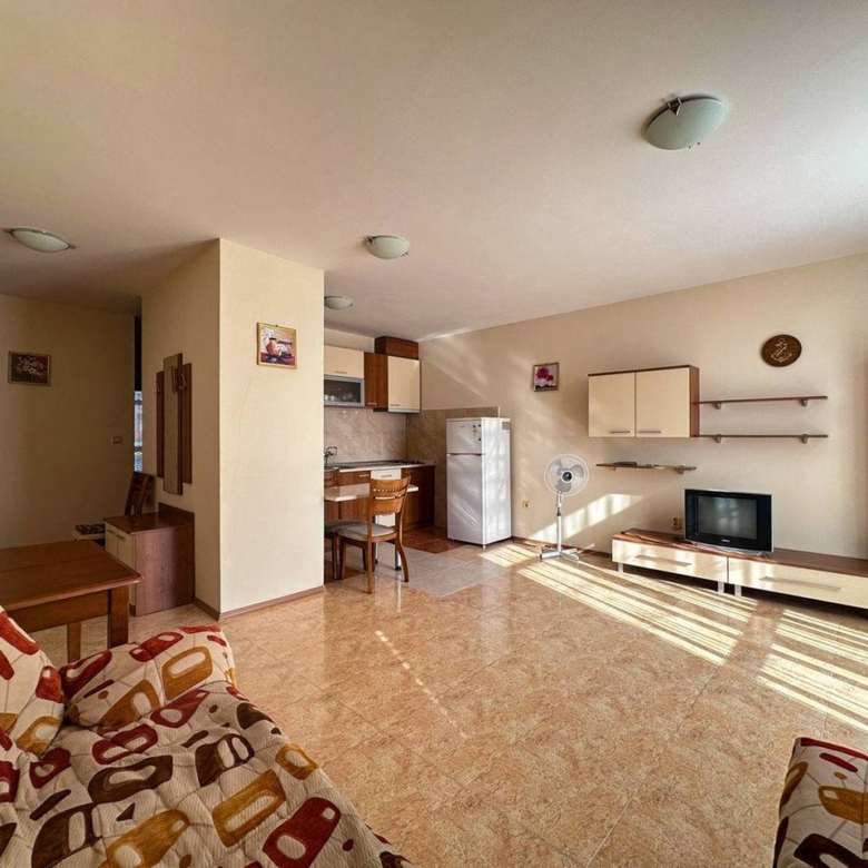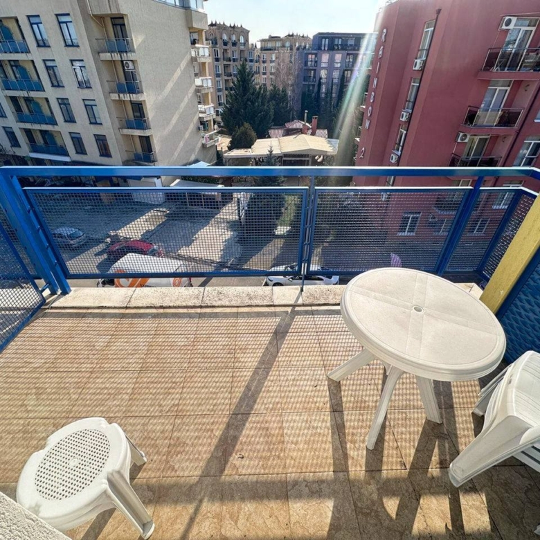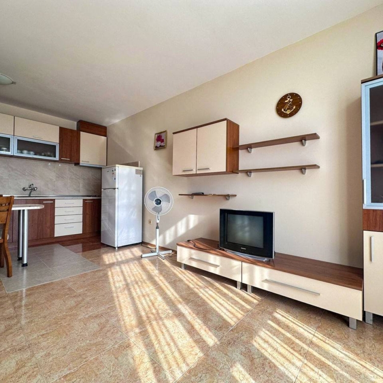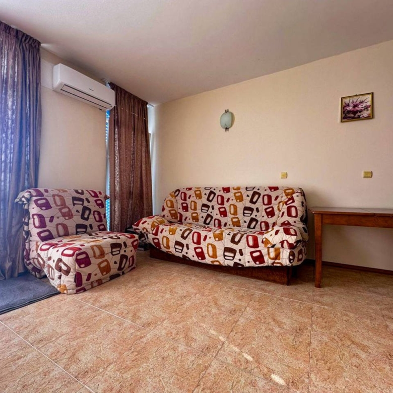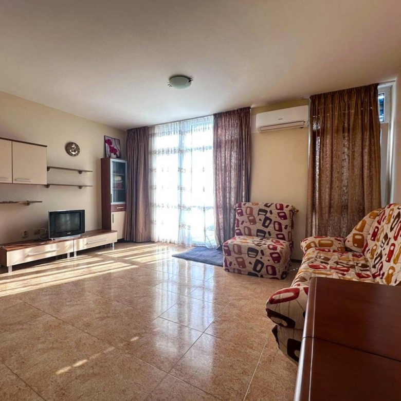 This spacious and fully furnished two-room apartment is located in the modern apartment complex Elite 4, in the southern part of the popular vacation resort Sunny Beach, just a short walk from the beach and only a few minutes from the historic Nessebar.