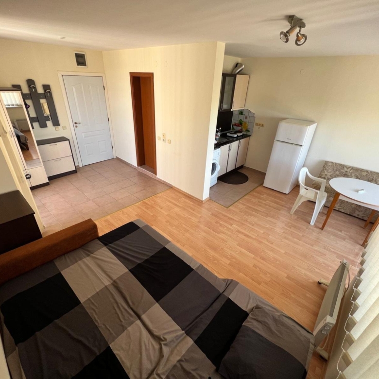 We are pleased to offer you a well-maintained studio apartment in the popular Nessebar Fort Noks complex at Sunny Beach – ideal for investors, holiday guests, or as a second home on the Bulgarian Black Sea coast.