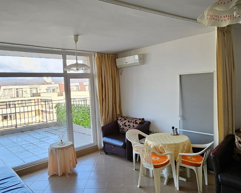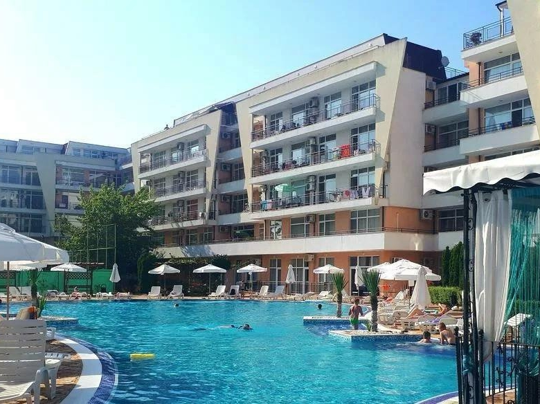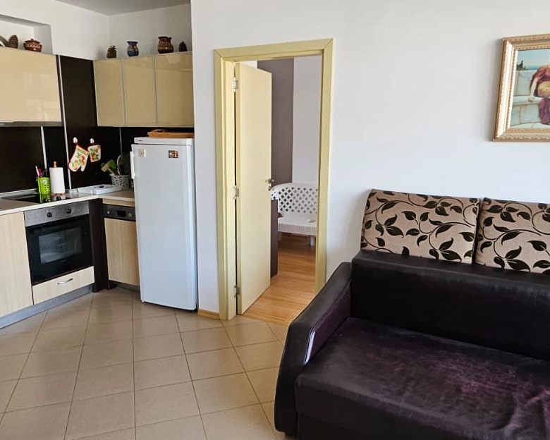 For sale is a spacious, fully furnished two-room apartment in the well-maintained residential complex Grand Kamelia, located just about 600 meters from the sandy beach, in the lively heart of Sunny Beach on the Bulgarian Black Sea coast.