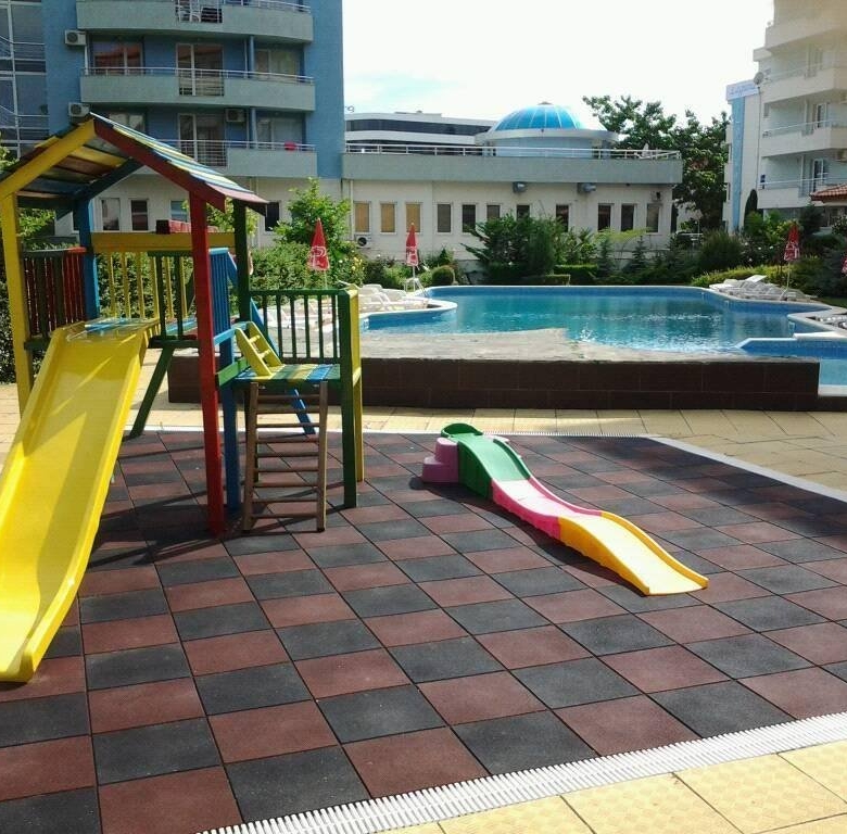 The Diamond Bay complex is located in a quiet and green residential area of Sunny Beach, one of Bulgaria’s most popular seaside resorts. The distance to the fine sandy beach is only about 450 meters, providing quick and convenient access to the sea.
