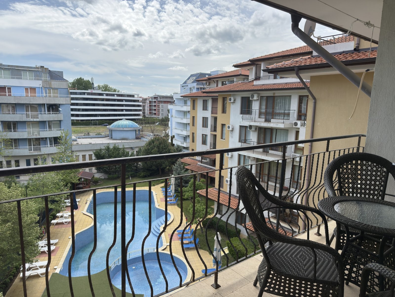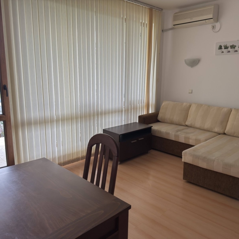 For sale is a fully furnished two-room apartment in the well-maintained Diamond Bay complex, located in a quiet and green area of the popular resort town of Sunny Beach. The apartment is only approximately 450 meters from the beach, offering an ideal combination of tranquility and proximity to the seaside.