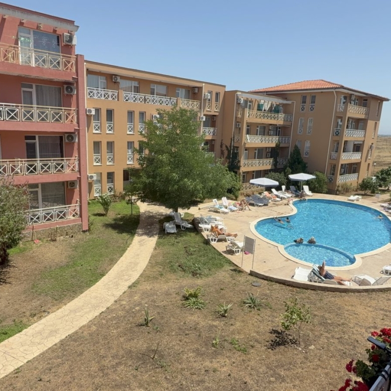 For sale is a spacious and move-in ready two-room apartment in the extensive residential resort Sunny Day 6, approximately 4 km from the fine sandy beach of Sunny Beach. The apartment is located in one of the well-maintained four-story buildings (without an elevator) and features: