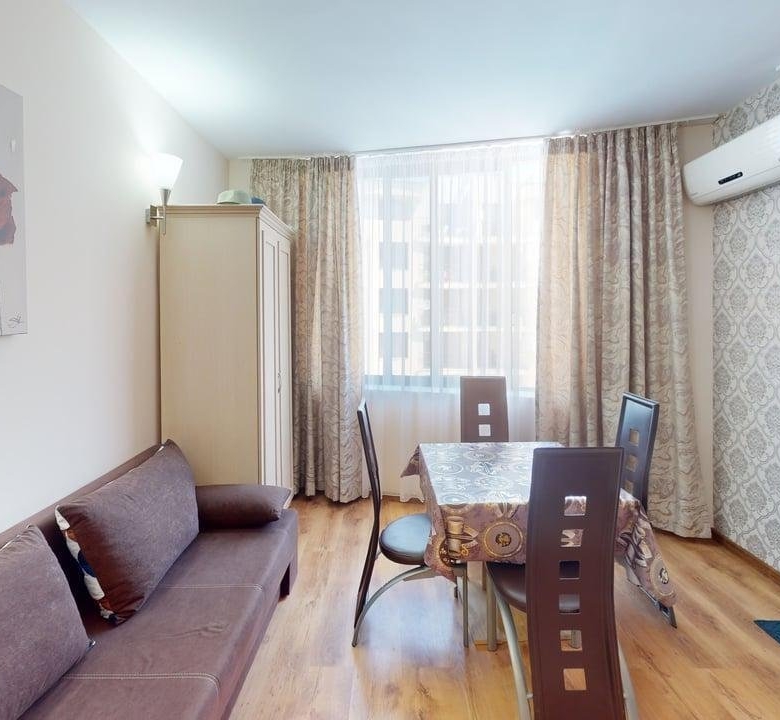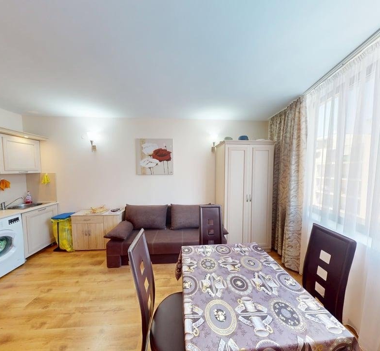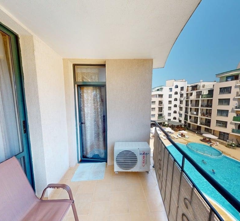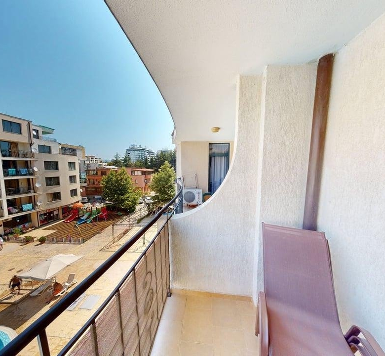 For sale is a 63 m² apartment in the popular Avalon complex in the holiday resort of Sunny Beach, Bulgaria. The apartment is located on the 4th floor of a 6-story building with an elevator and is fully furnished – move-in ready for immediate occupancy or rental.
