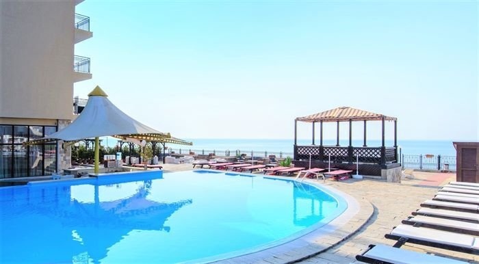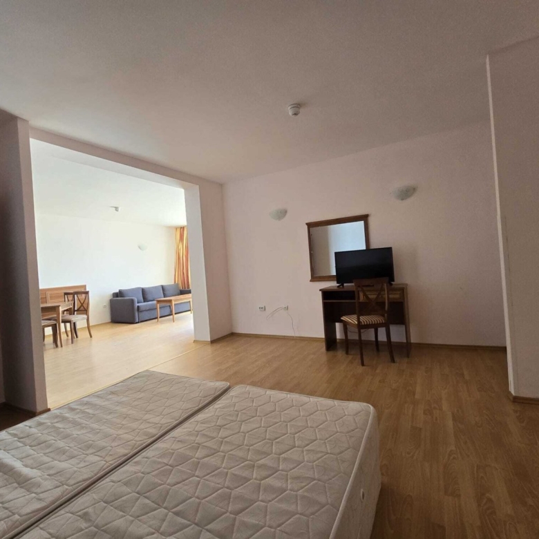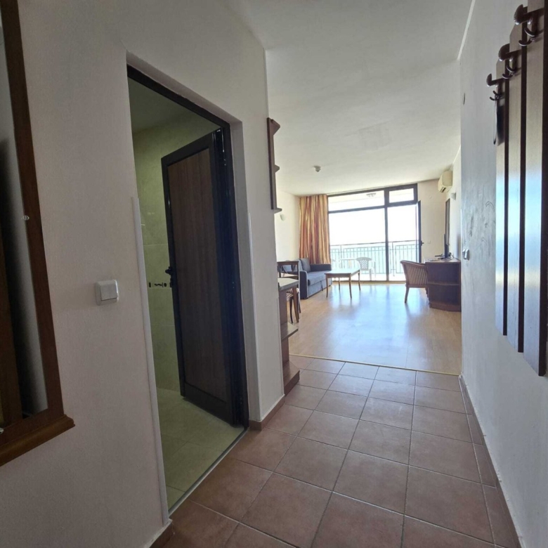 For sale is an extraordinary 2-room apartment with breathtaking, direct sea views in the exclusive Tiva del Mar complex (formerly Caesar Palace), right on the beach of Sveti Vlas. The property is located on the 5th floor and offers a spacious living area of 90 m² – perfect for anyone looking for stylish living close to the sea.