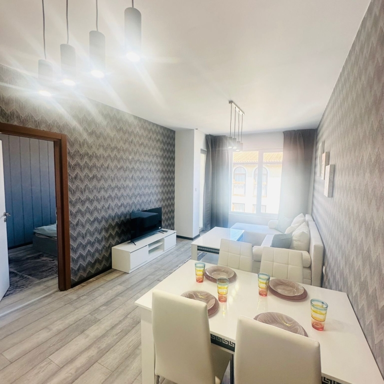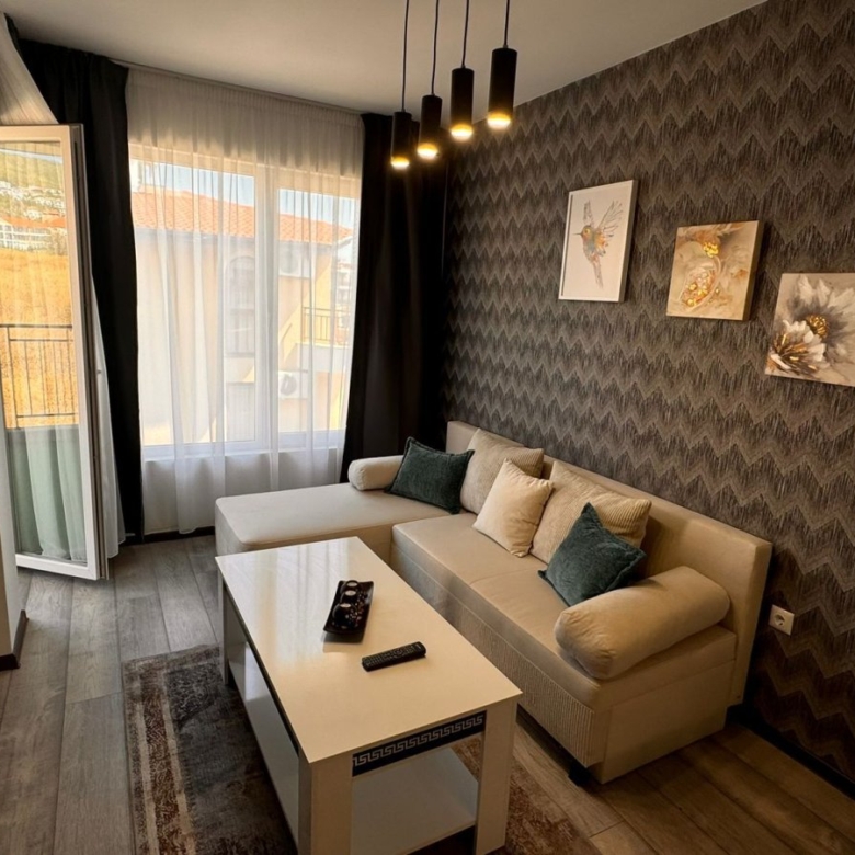 For sale is a stylishly furnished one-bedroom apartment with sea and pool views in the exclusive Domus complex in Sveti Vlas. The property is located in a quiet area, just 250 meters from the beach, where a variety of beach bars and water sports await you.