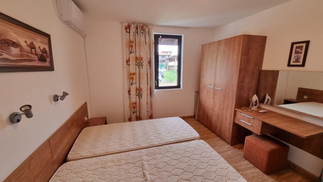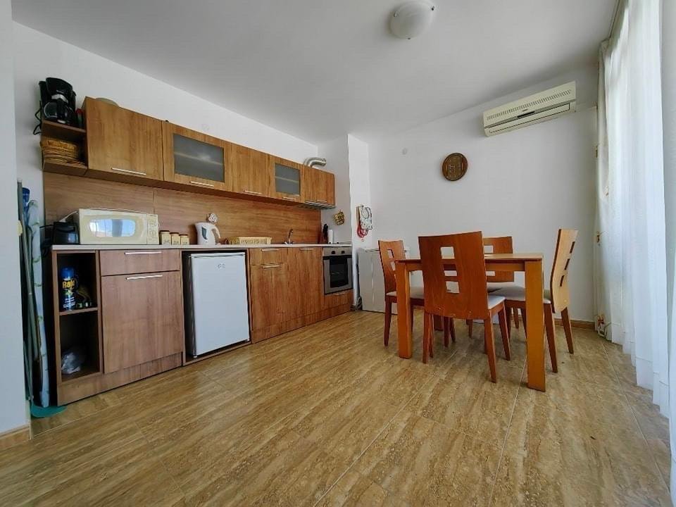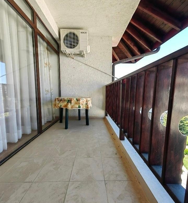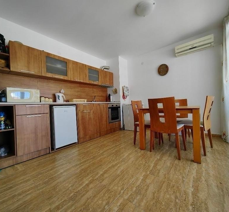 We offer for sale a fully furnished one-bedroom apartment in the renowned Etara 2 complex in Sveti Vlas. With a living area of 67 m², this apartment impresses with its comfortable and functional layout. The spacious living room includes a well-equipped kitchen, a cozy dining area, and a stylish sitting area. The bright bedroom is generously sized, air-conditioned, and has access to the balcony. Perfect for year-round living or as a holiday home, this property is an excellent investment in a prime seaside location.