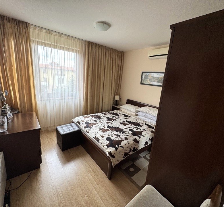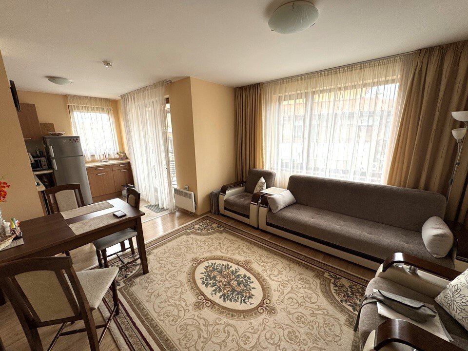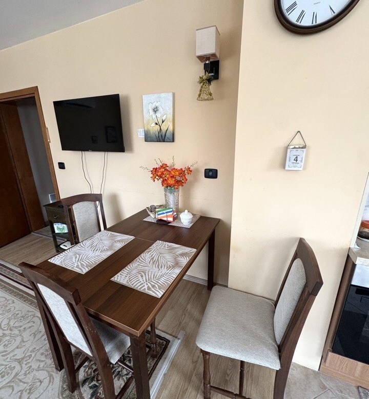 This charming two-room apartment is located in the exclusive Garden of Eden complex in Sveti Vlas, a popular holiday destination on Bulgaria’s beautiful Black Sea coast. The complex is situated right on the beachfront and offers the perfect combination of tranquility and luxury, ideal for a relaxing vacation or year-round living.