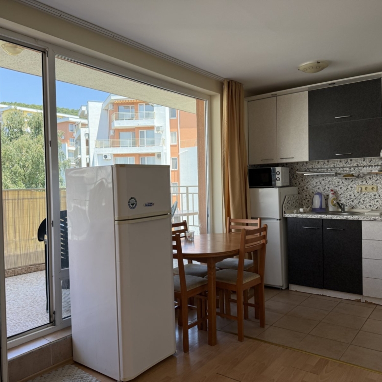 We offer you an attractive 2-room apartment with breathtaking sea views in the popular Crown Fort Club in Sveti Vlas, Bulgaria.