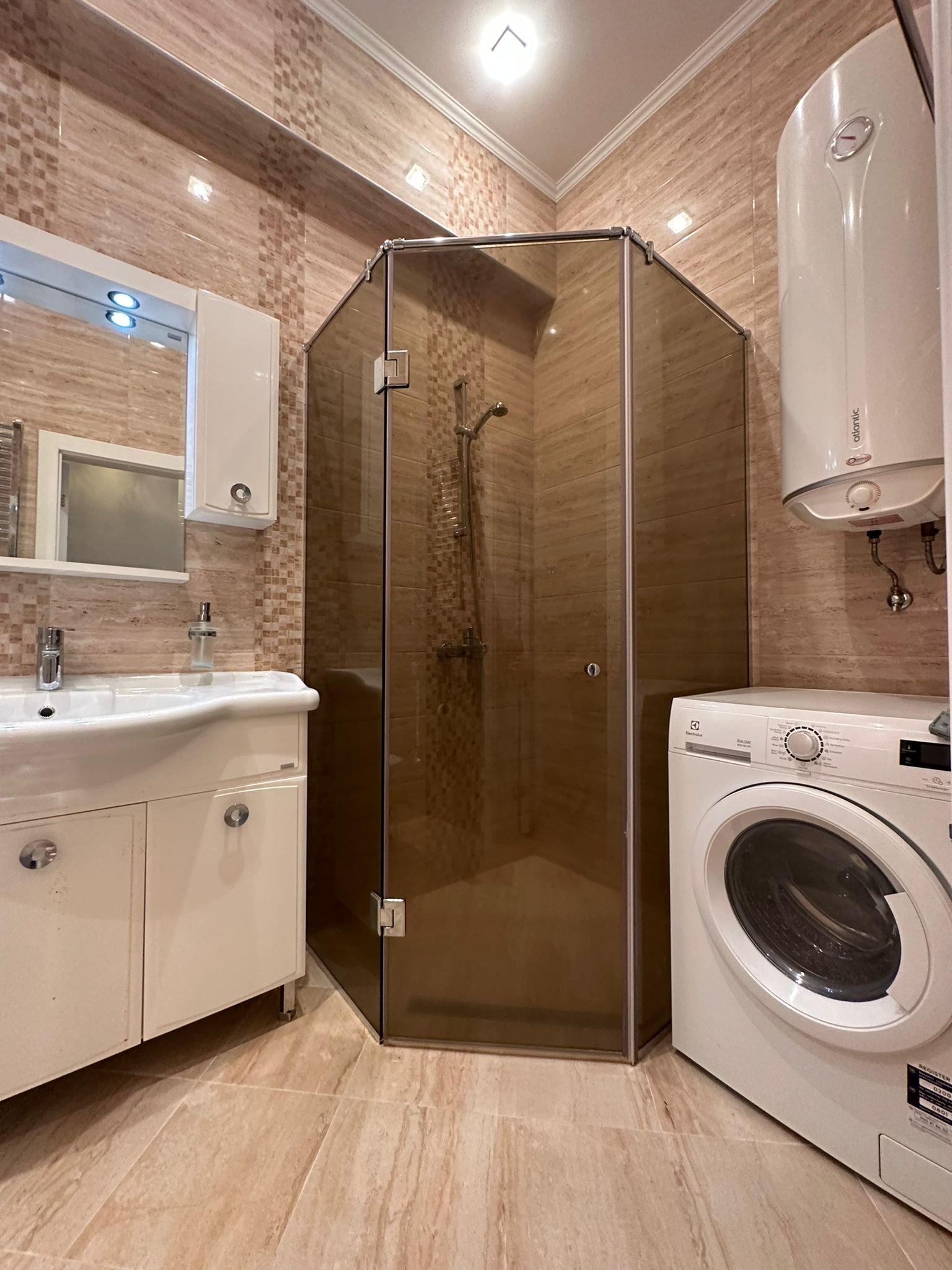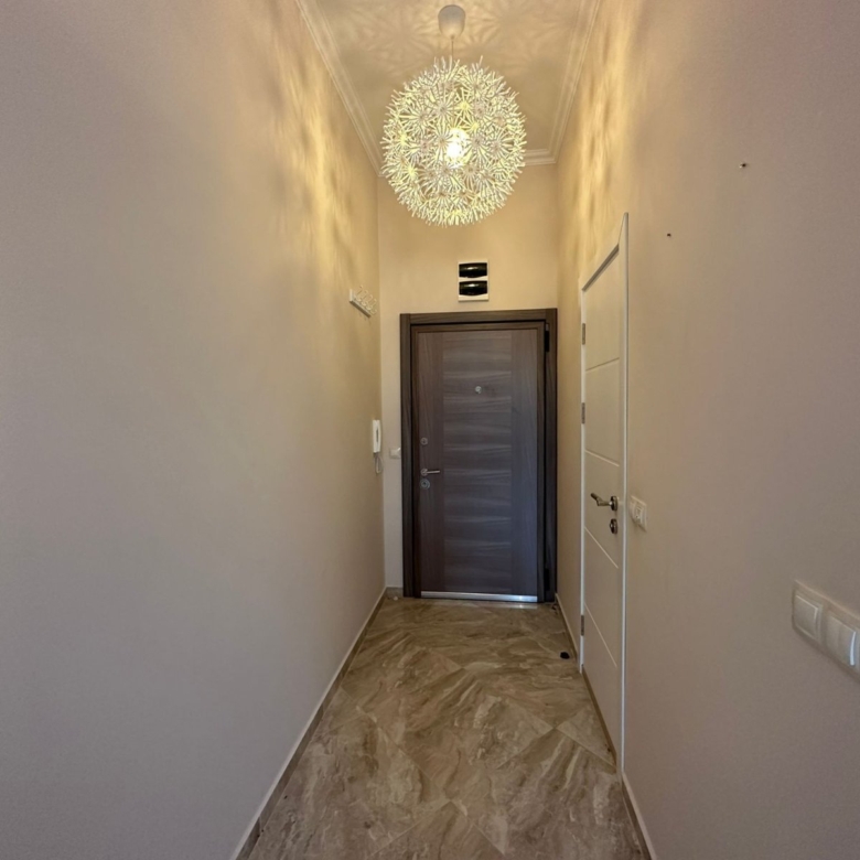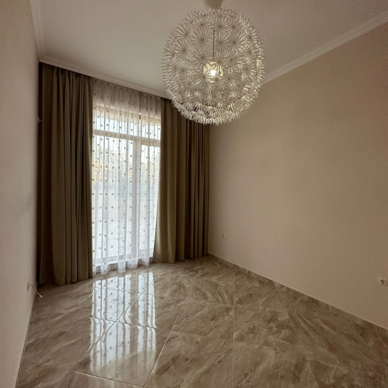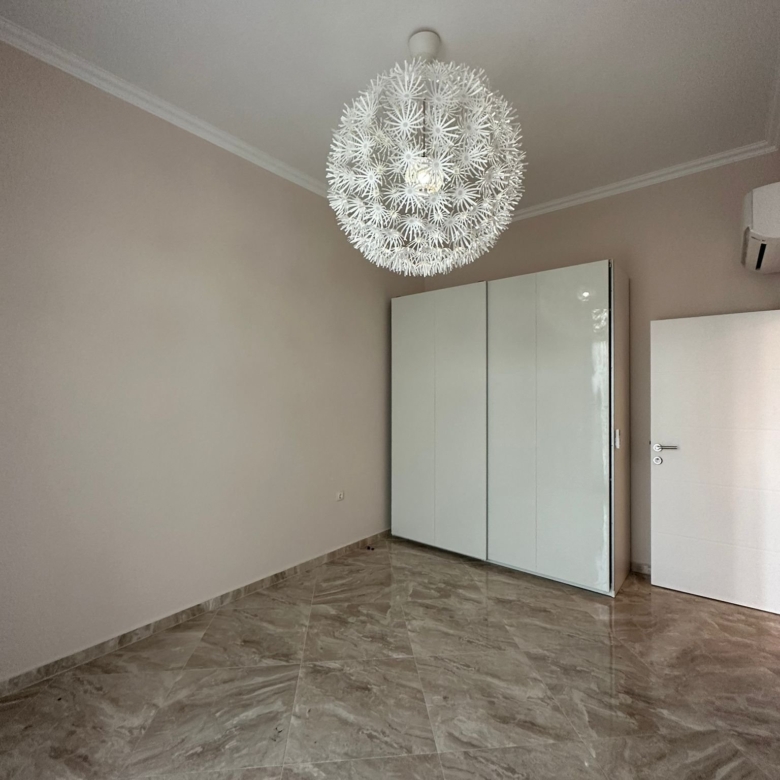 The flooring is fitted with luxurious tiles. The apartment is equipped with a washing machine, a refrigerator, and an oven. All appliances are unused and brand new. The apartment is air-conditioned and ready to be furnished to your liking.