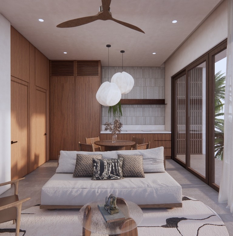 Residents can enjoy exclusive community amenities such as a club area with a private pool, bar and lounge, a restaurant, a gym, a kids playground, parking, and laundry facilities. The location offers unmatched views of rice fields, is strategically situated to avoid major traffic, and is positioned next to the prestigious Four Seasons Ubud and Room 4 Dessert restaurant. The units are fully-furnished and ready-to-move-in. The construction includes advanced waterproofing systems, backed by a 5-year structural warranty, a 1-year installations warranty, and a 1-year fitting warranty, designed to protect against moisture, mold, and structural damage.
