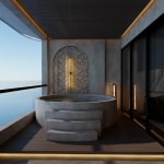 Expansive 500 m² rooftop lounge, with panoramic ocean and jungle vistas, ideal for yoga or sunset gatherings.