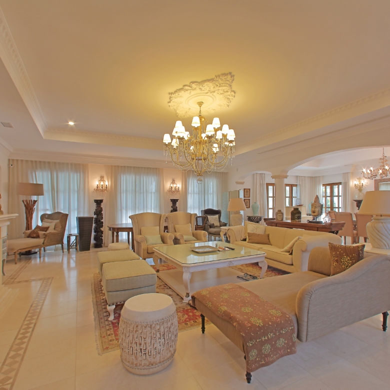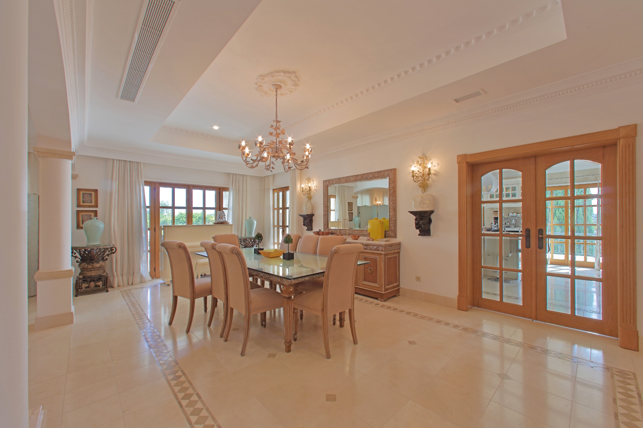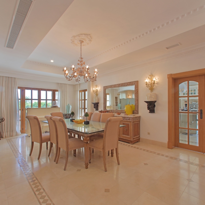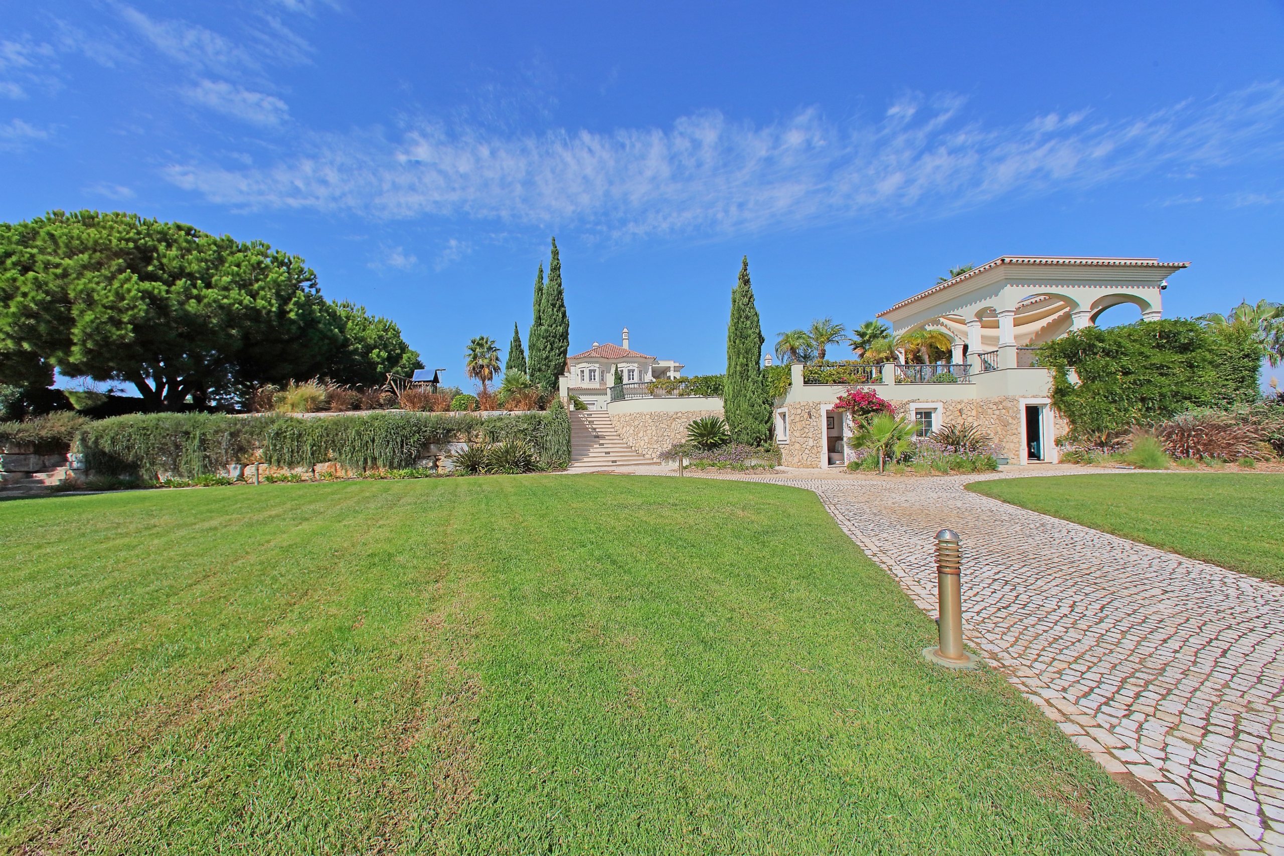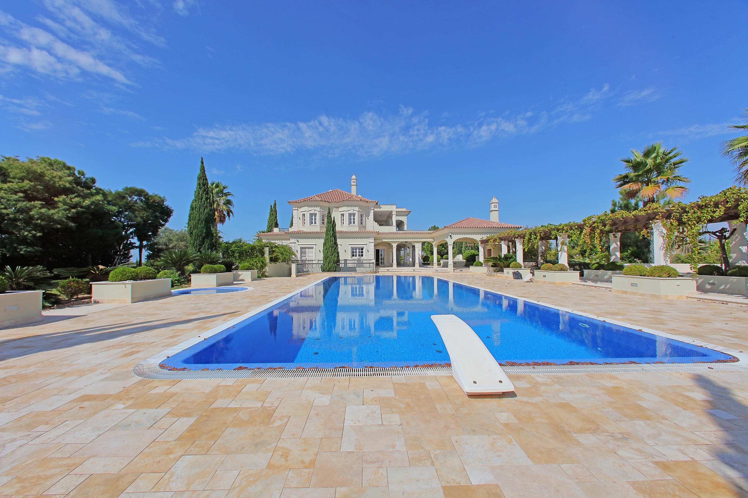 11-bedroom villa, 1,228 sqm (construction gross area), just a few minutes walking distance from the beach, with dazzling views of the Ria Formosa and the sea, set in a plot of land with 8,020 sqm, in the heart of Quinta do Lago, Faro, AlgarveWith total privacy, the house is divided into three floors and is designed with the most modern home automation and security materials, with surveillance cameras throughout the house. On the ground floor there is a 133 sqm living room, five bedrooms, an office and a fully equipped kitchen, the master bedroom and the other four bedrooms are on the first floor, all with views of the lake and the river. With large areas throughout the house, this villa also has a games room, bar, TV room, gym, sauna, Turkish bath and industrial laundry in the basement. Tennis court and an infinity pool, with an annex to support the swimming pool with bathroom, living room and bar. Very well kept garden, a barbecue for meals, parties and a park for children and a garage for three cars. Quinta do Lago is known worldwide for its natural beauty, beach, golf courses, privacy, security and the excellence it provides in services and amenities.From the Concierge service to plan or book any service or activity to 24-hour security, as well as a clinic in the centre of the resort. A large gastronomic offer with nine restaurants, surrounded by three golf courses and new elite sports facilities, all designed in detail to guarantee a unique lifestyle experience. At the entrance of the Resort there is also a shopping centre with the best clothing brands, cafés, restaurants, pubs and a supermarket.Only fifteen minutes from Faro airport, with easy access to the highway and all services in Almancil.