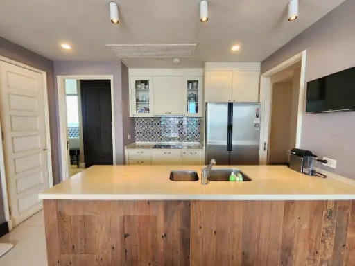 This 155 sqm unit on the 28th floor really makes the most of its space with two bedrooms and three bathrooms, which is pretty convenient if you have guests or a small family. The layout is open and minimalist, so you won’t feel cramped, and the large floor-to-ceiling windows sliding out to the balcony bring in lots of natural light plus fantastic cityscape views.