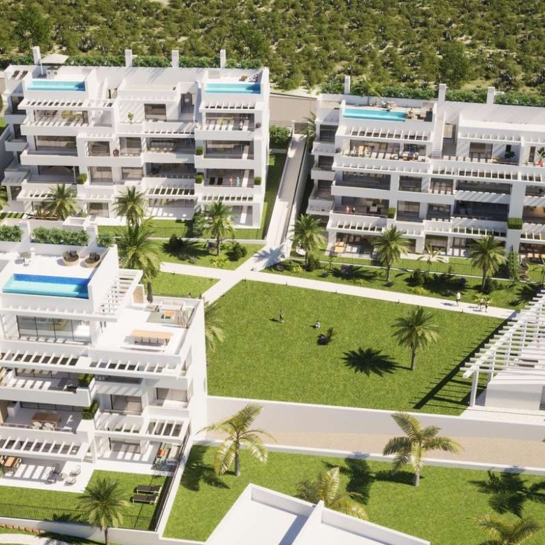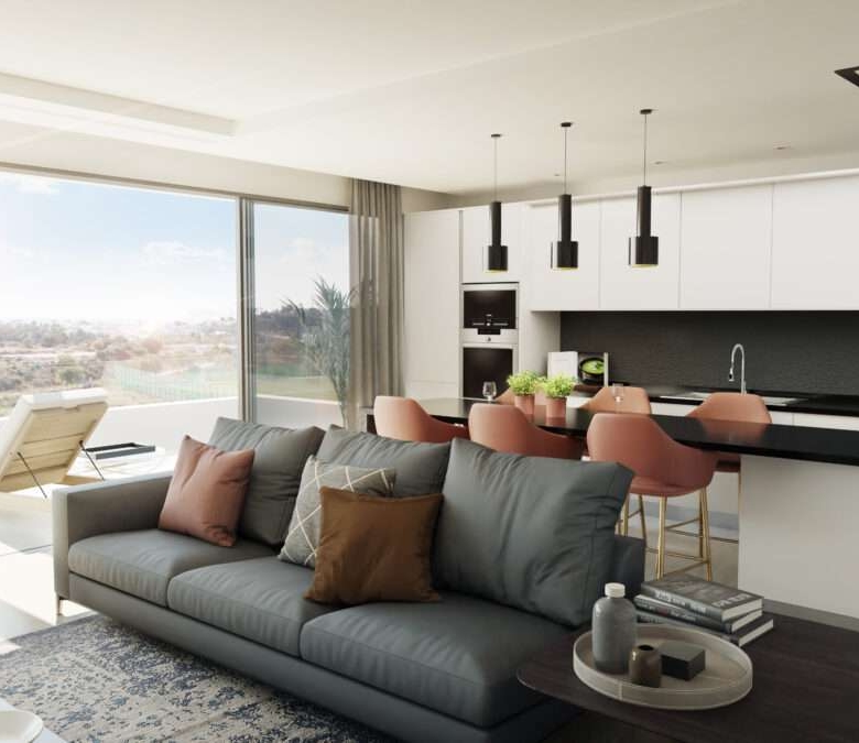 The 2-bedroom apartments have between 84 m² and 104 m² of living space, are specially designed to fully enjoy the charm of the Mediterranean lifestyle, but also with a Northern European vision. Spacious apartments, where the generous living room with open kitchen flows organically into the very spacious terrace.