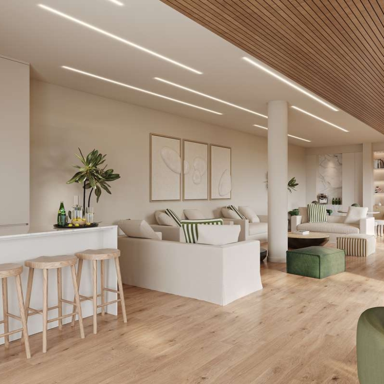 The generous terraces with sea views invite you to enjoy unique moments outdoors, while the common areas have been designed to encourage socializing and relaxation: landscaped gardens, relaxation areas, swimming pools, a gym, a spa, and much more.