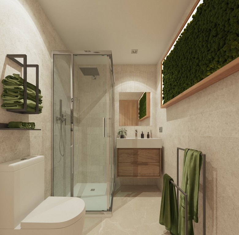 – Fully-fitted bathrooms with unit, mirror, and shower screen.