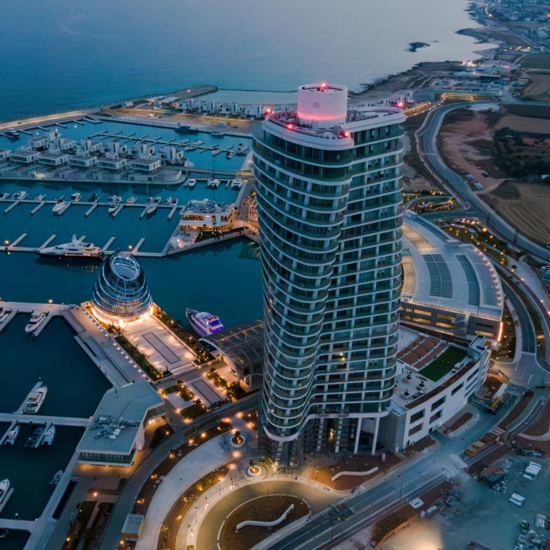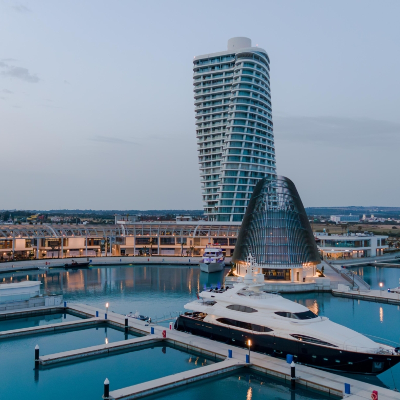 Positioned along the Ayia Napa coastline, the East Tower is part of a marina that combines luxury residences, fine restaurants, a yacht club, and a retail promenade.