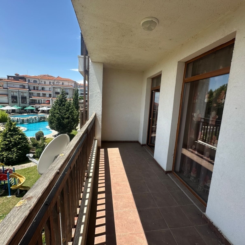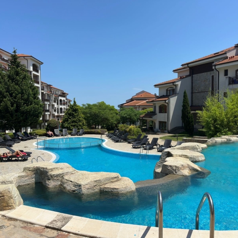 The complex offers a variety of amenities: multiple swimming pools, a spa area with a sauna and Jacuzzi, a restaurant, bars, a supermarket, well-maintained green spaces, and 24-hour security service. Thanks to its quiet location, just a few minutes from the beach and in close proximity to Sunny Beach, Nessebar, and Pomorie, the apartment is ideal for both summer holidays and permanent residence.