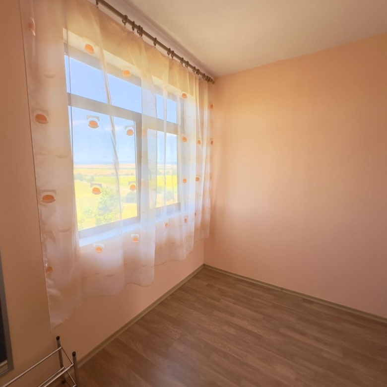 This bright and spacious three-room apartment with a living area of 78.39 m² is located on the 4th floor of the exclusive Vineyards Resort residential complex in Aheloy. The apartment consists of two bedrooms, a generous living room with a kitchen area, a bathroom, and a balcony with a magnificent view.