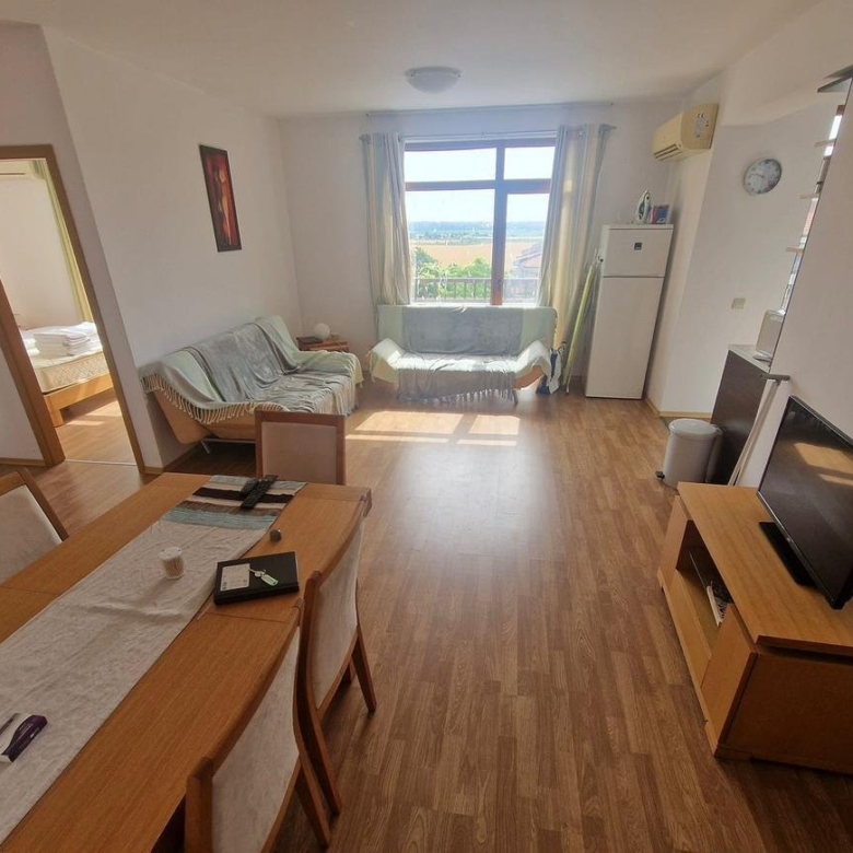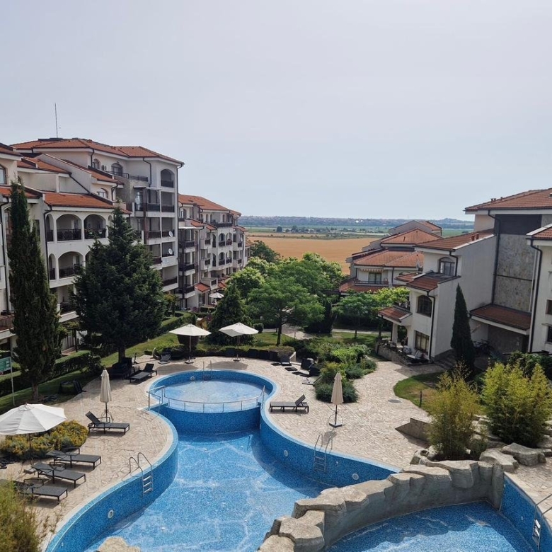 We offer a 3-room apartment in the Vineyards Resort between Kableshkovo and Aheloy in Bulgaria. The apartment is located on the 3rd floor and includes: