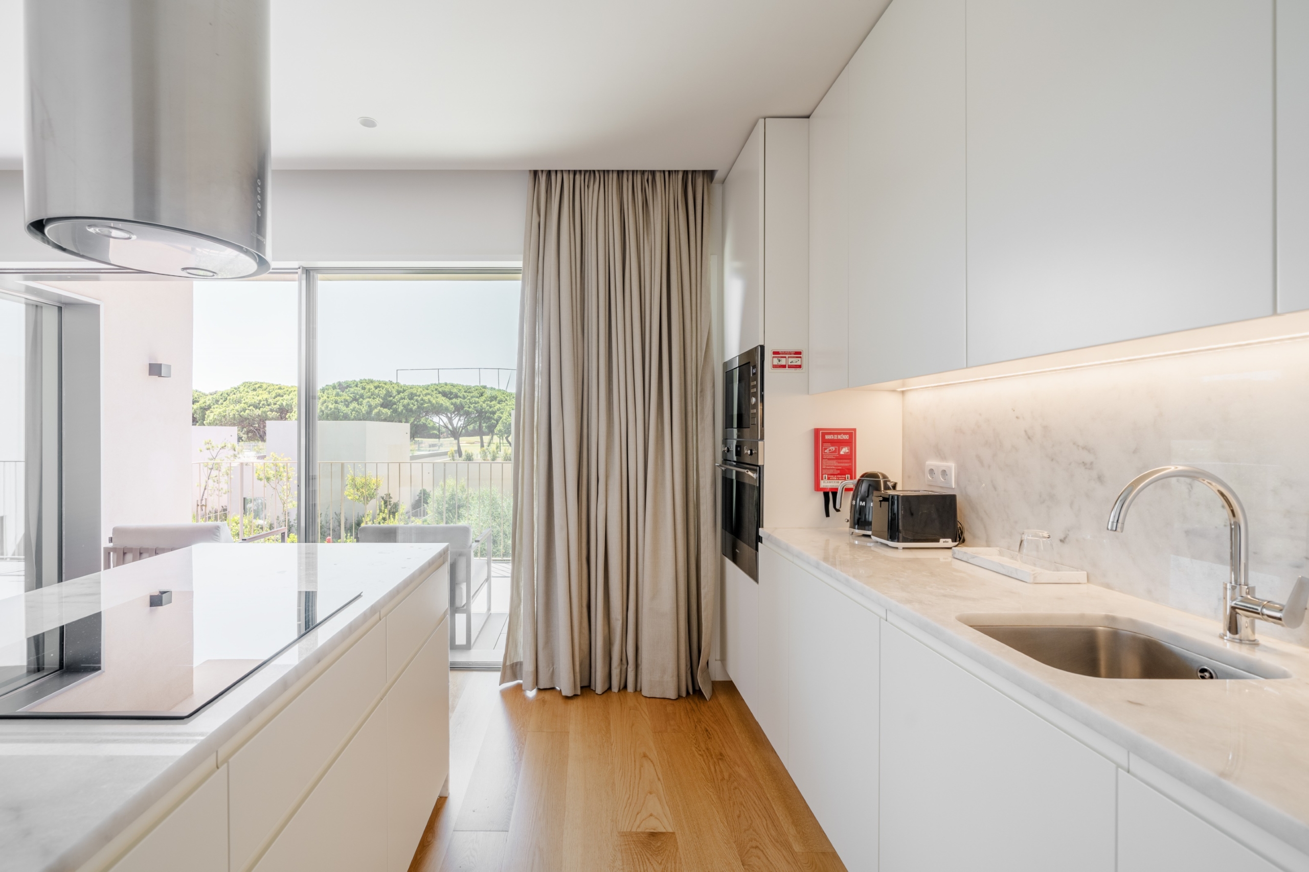 2-bedroom apartment with 134 sqm of gross private area, balcony with unobstructed views, two parking spaces, and storage, in the gated community Marinha Prime, with 24-hour security, in Quinta da Marinha, Cascais.The apartment, surrounded by green landscape, features a living room, dining room, kitchen with pantry, and balcony in a fully integrated open-space concept, allowing for spaciousness and fluidity, prioritizing interaction for family and friends gatherings. It has two bedrooms, one of which is en-suite, and a complete bathroom.Marinha Prime is a newly constructed tourist resort with high-standard finishes, contemporary architecture, 24-hour security, swimming pool, gym, and is set in a green area of 2.7 hectares, next to the Atlantic, just minutes from the cosmopolitan town of Cascais.Also in Quinta da Marinha, within walking distance, there are two golf courses, a health club, and an equestrian center.Located in a quiet area, near the sea and the bicycle path that connects Cascais to Guincho Beach, it is 10 minutes walking distance from Sheraton Cascais Resort and Onyria Quinta da Marinha Hotel. 5 minutes driving from CUF Cascais Hospital, 10 minutes from King’s College School Cascais, 14 minutes from Salesianos do Estoril School, Deutsche Schule Estoril, and Santo António International School, 20 minutes from St. Julian’s School Carcavelos and Nova School of Business and Economics. 5 minutes from access to A5 highway and 30 minutes from Lisbon airport.