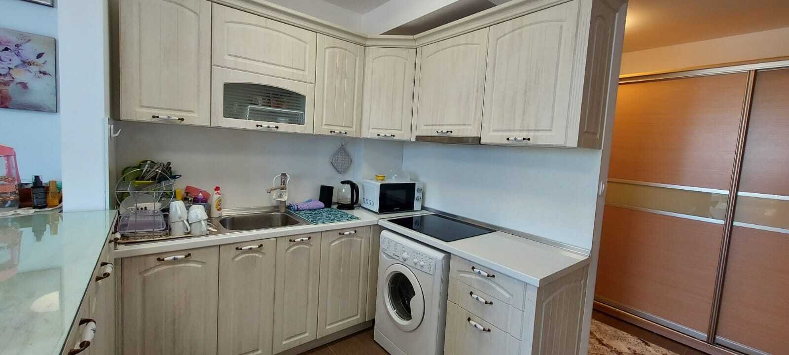 We offer for sale a 3-room apartment in the “Robinzon Beach” complex in Elenite. The apartment is located on the 2nd floor and has an area of 87 m². It consists of a living room with a kitchen area, 2 bedrooms, a bathroom, and a terrace with views of the sea and pool. The apartment is offered with new furniture and appliances.