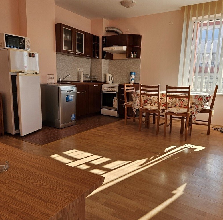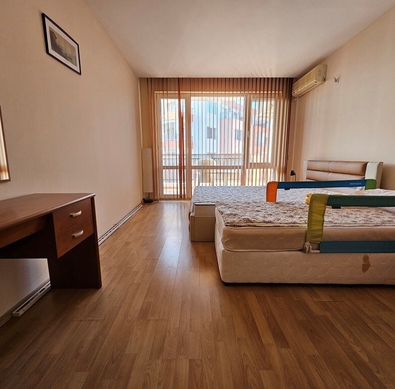 Spacious, fully furnished and equipped resale apartment with two bedrooms on the third floor of the Privilege Fort Beach complex in Elenite, just 150 meters from the quiet Robinson Beach. The total area of the apartment is 124.70 square meters. The apartment is located only 150 meters from the beach.
