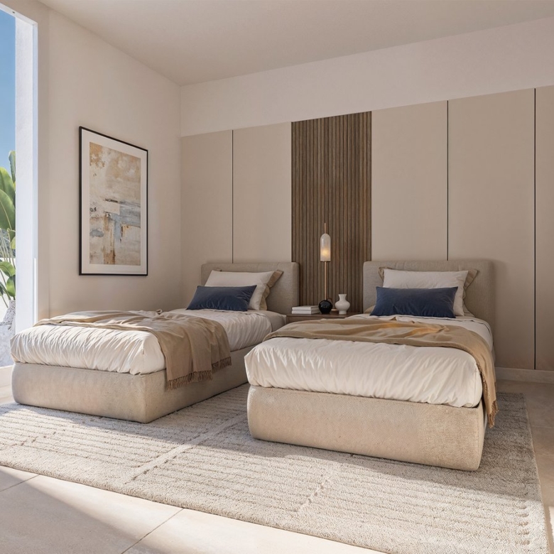 From its elevated position, residents enjoy spectacular vistas of the Bay of Estepona and Valle Romano Golf Course. Thanks to the privileged south-facing orientation, all homes are filled with natural light throughout the day, creating bright and spacious interiors. Large floor-to-ceiling windows connect the living spaces with generous terraces, enhancing the sense of openness and indoor-outdoor living.